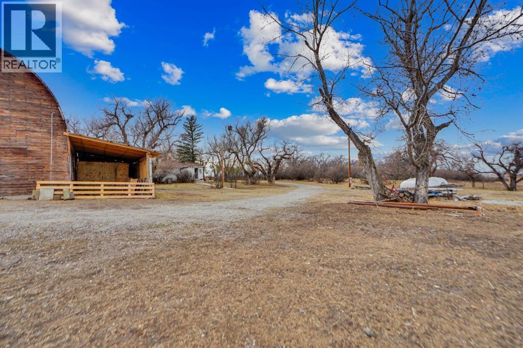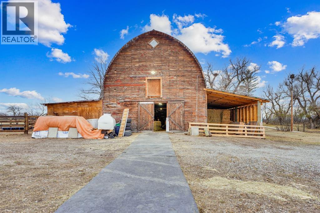 This homestead residence is 774 SF, is nestled on a generous 5-acre parcel of prime land. The home is a true fixer-upper, presenting an opportunity for repairs and renovations to restore its original charm. is sold “AS IS WHERE IS”. it has never been offered for sale, making it a unique chance for buyers seeking a property with historic character and potential. There are services to the home but not hooked up, with a gas meter already installed. Electrical wiring throughout the house is copper and the main breaker shut off for the entire property is at the power pole. The house is serviced by a concrete septic tank and a greywater field. The well is poly-lined, 80 ft deep, and according to Alberta well records, sits on an aquifer, indicating a reliable water source; however, the gallons per minute are unknown. Exterior construction features quarter logs of Douglas Fir with a poured concrete basement. Front of the property has a wood fence (2023), constructed with page wire and 12-inch cedar posts. The large barn is a Dutch-style gothic arch structure, measuring 32 ft by 64 ft, with a main floor of approximately 2,000 SF (including both lean-tos) and a loft measuring 32 ft by 30 ft (960 square feet). The barn is cable-suspended, with cables supporting the walls in all directions. The concrete floor was poured in 1950. The barn and lean-to includes lighting & electricity. The barn’s roof was replaced in 2021. Horse enthusiasts will appreciate this large barn that leads to the covered horse lean-to (2022) with heavy duty rubber mats, a large fenced paddock with an outdoor electrical outlet. The opposite side of the barn offers a lean-to (2024) for hay storage, etc. There is a dedicated 60-ft round pen (2025) w/sand, perfect for training and exercising horses, and approx. 2-3 acres of grazing land. The entire property is fenced with four strands of barbed wire and wood posts and is cross-fenced with numerous gates.. New gravel to the driveway (2023). 30 plus mature t rees envelop the property, ensuring privacy and providing shade (oak, apple, elm, poplar, spruce), numerous shrubs, along with mature lilacs. The property boasts an abundance of wildlife, including owls, geese (which nest annually), fox, deer, eagles with nests, red-tailed hawks, and offers scenic views of the mountains. No neighbours on all 4 sides ensure this property remains serene and private. This 5 acre parcel is a Prime Location, ideally situated north of Parkland, 8 mins south of Nanton, 45 minutes from Calgary, just a short drive from the communities of Nanton and Stavely. Enjoy easy access to amenities, schools and local services without sacrificing the benefits of rural living. (31356190)