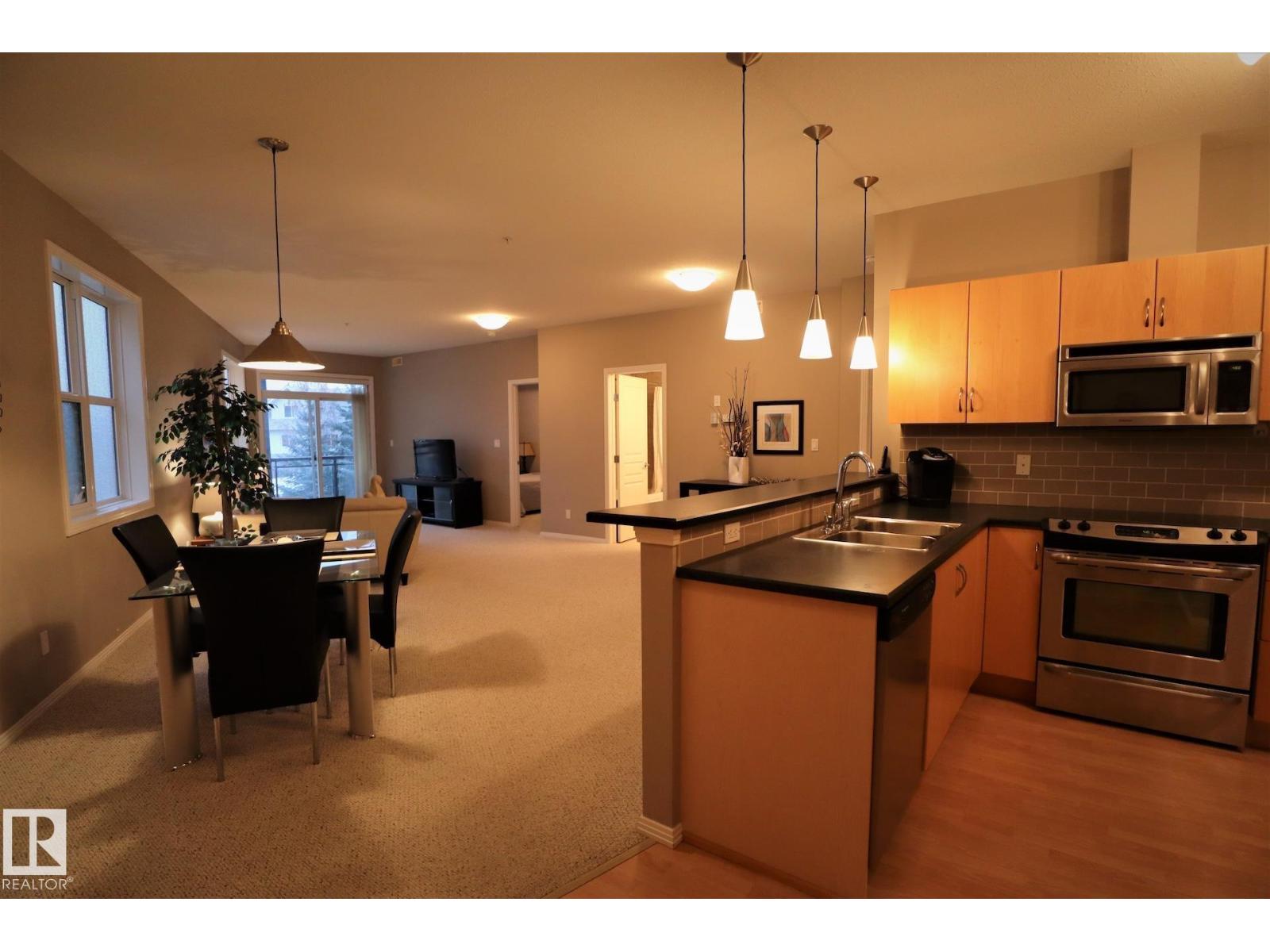 Welcome Home! 2 Bed 2 Bath Fully Furnished Executive Suite in Sherridon View, Fort Saskatchewan. Heat, Power, Water Included. Spacious open concept floor plan featuring a living room, dining area, and peninsula breakfast bar. Stainless steel appliances all included. High end finishes throughout! Master bedroom, you will find a 3 piece ensuite and walk-in closet. Spacious bedroom. In-suite laundry. Two heated underground parking stalls. Great location nearby tons of amenities, restaurants, walking trails. Easy access to Highway 21, Anthony Henday and a short drive to DOW, NWR, Keyera and Shell Scotford. (33552655)