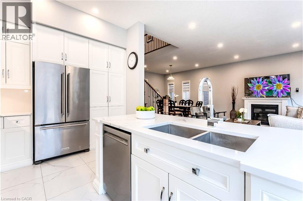 Dare to be impressed in The “Rahi” Model boasting over 3444sqft of finished living space w/a 3 bed + 2 bed, 3 1/2 bath floor plan w/upper family room and a host of premium features. IMPRESSIVE 8 FOOT TALL FRONT ENTRY DOOR, setting the tone for the lavish interiors that await. The designer kitchen is adorned with upgraded Heirloom-style maple cabinetry, soft-close cabinets, and a QUARTZ COUNTERTOP & BACKSPLASH THAT EXUDE SOPHISTICATION. Enhancing its allure is the island w/upgraded corner posts, a wine fridge, gas stove with an upgraded stainless chimney hood fan, and in-floor heating. A 6 ft patio door featuring a transom window above, inviting natural light and seamless indoor-outdoor living. Gather around the NAPOLEON GAS FIREPLACE IN THE GREAT ROOM, illuminated by pot lights strategically added for ambiance. The opulence extends to every bathroom, where UPGRADED QUARTZ COUNTERTOPS AND MAPLE SHAKER CABINETS create a spa-like atmosphere. Revel in the luxury of a 10 ft main floor ceiling height, 12x24 CERAMIC TILE FLOORING in the foyer, kitchen, and bathrooms, alongside maple hardwood flooring in the Great room, dining room, family room, and upper hallway. Ascend the MAPLE HARDWOOD STEPS ADORNED WITH BLACK WROUGHT IRON SPINDLES, leading to an upper family room for additional relaxation and leisure. Retreat to the generously sized primary bedroom which features a walk-in closet. The master ensuite, a sanctuary featuring DOUBLE VESSEL SINKS, A FREESTANDING TUB, AND A GLASS-ENCLOSED SHOWER with a rain shower head, EPITOMIZING INDULGENCE AND STYLE. Professionally finished by the builder, the basement offers additional living space with a 9 ft ceiling, two bedrooms, and a 3 pc bathroom, illuminated by two Egress windows that flood the space with natural light. Outside, unwind in the fully fenced backyard, complete with a retractable awning and deck, perfect for dining and entertaining. (69869864)