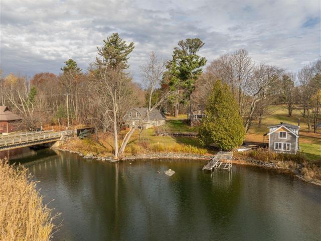 *Must be sold with MLS#27733736. Over 210 linear feet of waterfront! Discover this timeless property, beautifully renovated with great care to preserve its original charm. Set on nearly 4 acres of meticulously landscaped grounds, it features a barn, a private boat launch, a secondary building with a workshop and bedroom, an in-ground pool, and stunning terraces offering breathtaking water views. Just a few minutes by boat will take you to Lake Brome, where you can fully enjoy water activities and the area's exceptional scenery. A truly unique property to discover! (56821407)