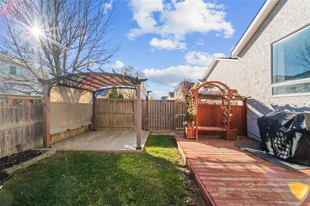 1S//Winnipeg/Open House: Saturday, December 13th from 2 4 PM and Sunday, December 14th from 2 4 PM. Offers as received. Spectacular 1,788 sq. ft. cab-over home located in the highly desirable Richmond West neighborhood. This immaculate property offers 3 bedrooms and 3 full baths, plus 3 additional bedrooms and an office in the basement. As you step inside, you re welcomed by vaulted ceilings and an abundance of natural light that fills the formal living and dining areas. The kitchen showcases elegant maple cabinetry, updated tile flooring and backsplash perfect for both everyday cooking and entertaining. The kitchen opens seamlessly to the main family room, overlooking the beautifully landscaped backyard. The main floor includes two spacious bedrooms and a full bath, while the large primary suite features a 5-piece ensuite and a walk-in closet. Downstairs, the fully finished basement offers three additional bedrooms, a large office, and a full bath providing plenty of space for family, guests, or a home business. The fully fenced backyard is beautifully landscaped and includes a deck, patio, and gazebo ideal for relaxing or hosting gatherings. Furnace was updated in 2024. (231618467)