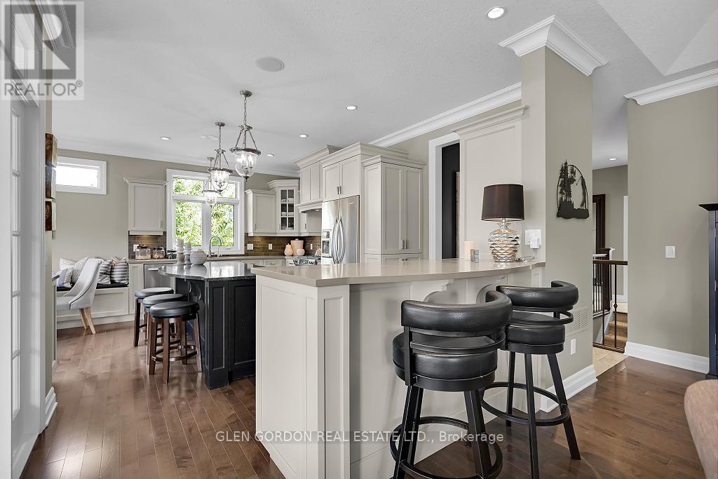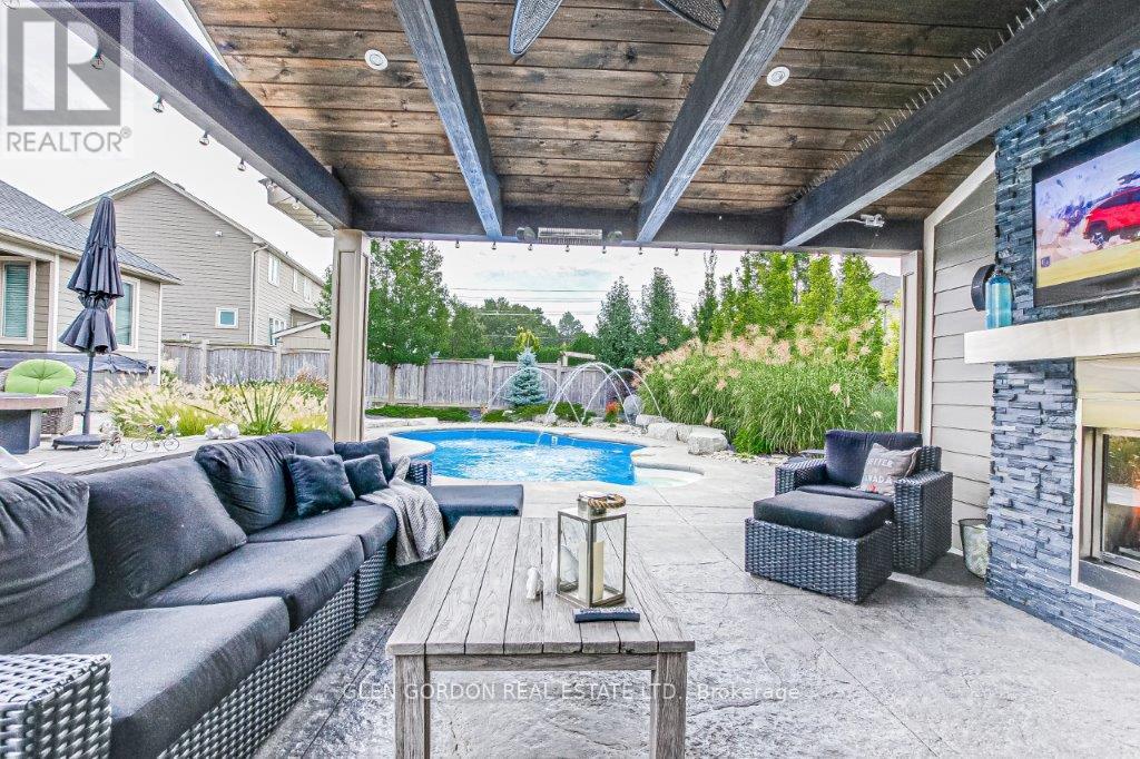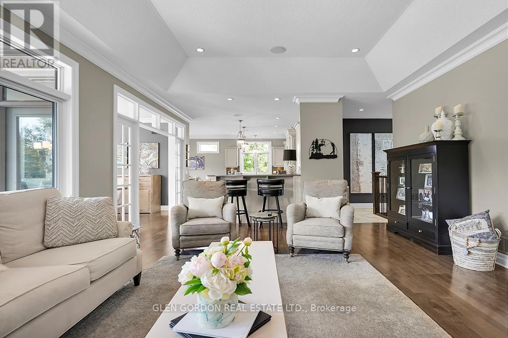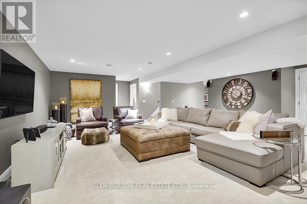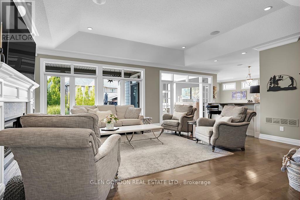 Absolutely Stunning Home! -- A Rare Find! This home with timeless design & modern comfort doesn't disappoint with an incredible outdoor living space 2nd to none and a terrific floor plan! Situated on a quiet court steps away from walking trails & protected wetlands - nature at your doorstep -- just one of the highlights of this exceptional home! Beautiful curb appeal - from the newer drive to the welcoming entry that opens to the gorgeous interior with the warmth of hardwood. Natural light dances through the many windows in this home from the Great Room with tray ceiling & fireplace that opens to the gourmet kitchen with awesome work islands, quartz surfaces, full size wine fridge, eating area with coffee bar/banquette. Formal dining room surrounded by windows that look out to the backyard oasis. Primary Bedroom boasting a lounge area with garden door leading to the covered deck and hot tub, 2 walk-in closets, 5 piece luxury ensuite with heated floors! 2 + 3 bedrooms, 4 full baths, 2 powder rooms (1 in the Cabana/Lanai). Lower level features a spacious family room, games room, wet bar, huge bedrooms - one currently an exercise room, large windows and high ceilings. 3 sets of garden doors lead to the covered deck & extensive stamped concrete patios, hot tub, salt-water heated pool, beautiful easy care gardens & an amazing showpiece Lanai (Cabana) with gas fireplace, TV, stainless steel kitchenette, outdoor powder room & bar. Sprinkler system, insulated 2 car garage with storage area extension. You need to see this exceptional home to truly appreciate all it has to offer! (41623659)