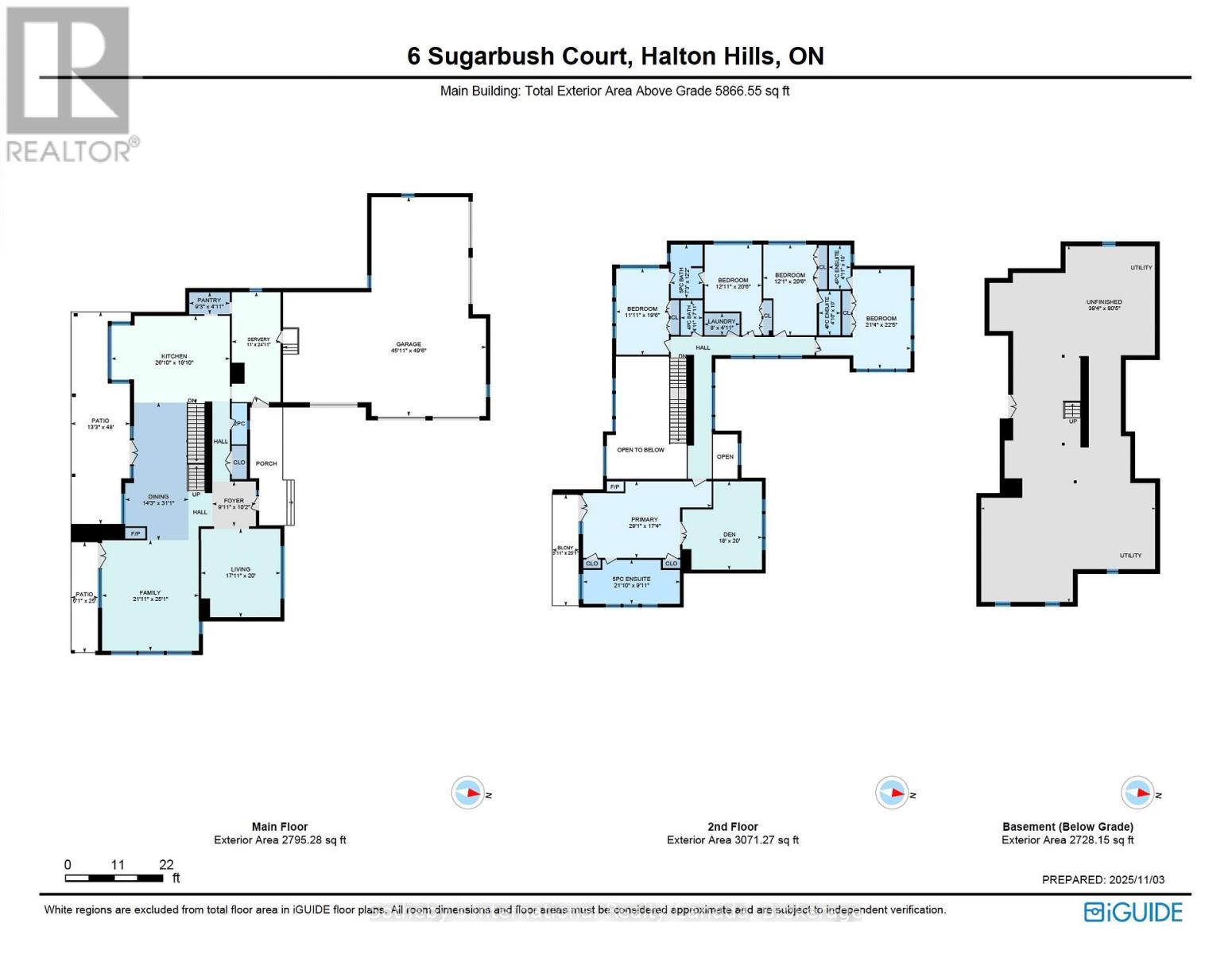 Exquisite luxury estate located on a private cul-de-sac in Halton Hills' prestigious Sugarbush Court. This stunning 5-bedroom, 6-bathroom home offers an unparalleled blend of elegance, design, and craftsmanship in a serene, upscale enclave of executive residences.Step through the welcoming entry into a breathtaking open-concept main floor featuring soaring ceilings, abundant natural light, and expansive living spaces ideal for both family living and entertaining. The heart of the home is a spacious kitchen with a large centre island, seamlessly connected to formal and casual dining areas.Upstairs, discover 5 generously sized bedrooms, each with its own ensuite and ample closet space. The unfinished lower level provides a versatile canvas for recreation, gym, media, or additional living space to suit your lifestyle. Additional highlights include a 5-car garage, HVAC systems on rental (~$100/month), and a deep, premium lot. A rare opportunity to own a private, elegant estate in one of Halton Hills' most desirable communities - a must-see for discerning buyers seeking luxury, space, and privacy. (41624021)