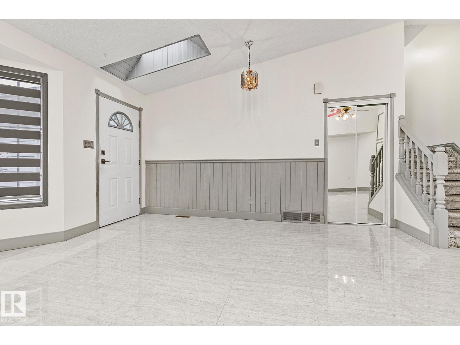 Upgraded SPLIT LEVEL along a QUIET street in Kirkness. The attached DOUBLE GARAGE & BAY WINDOW in the living room add to exterior curb appeal. Inside you are welcomed to a SKYLIGHT bringing in NATURAL LIGHT; a FRESH MOTIF w/ NEW PAINT, 24x 24 inch TILE w/ grey accents against a white palate welcomes you in. Entertain in the SPACIOUS living room w/ a dining room attached. Around the corner is a U- SHAPED kitchen featuring new QUARTZ counters, MODERN back splash tile, NEW sink & faucet; the EAT IN NOOK has PATIO DOORS leading to the deck & large FULLY FENCED yard to play in. Upper floor has 4 piece bath w/ TILED floor, NEW QUARTZ counters, sink & faucet. 3 bedrooms are FAMILY FRIENDLY. 3rd floor has a SIZEABLE family room, a full bath featuring new tub surround with 24x24 tile & an ample bedroom/den. Basement is partially finished & has some minor finishing left to make it complete. UPGRADED high efficiency furnace & chilly CENTRAL A/C, laundry room is around the corner, see it now! You will LOVE it! (33557905)