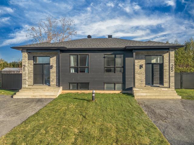 NEW SEMI-DETACHED / 5-YEAR WARRANTY / 3 BEDROOMS / 100% FINISHED Brand-new construction offering 3 bedrooms, 2 bathrooms, and many inclusions: sod, fencing, heat pump, 100% finished basement, patio on screw piles, LED lighting, quartz countertops, 36" x 36" ceramic shower, and more. Located in a family-friendly area with several recent constructions. Private and intimate lot serviced by municipal sewer (STEP system). Total price: $409,000, including the GST rebate to be reimbursed by the builder upon sale.Are you a first-time buyer? The price could be $396,599 taxes included (to be confirmed based on your situation). GST/QST must be added to the asking price (54555076)