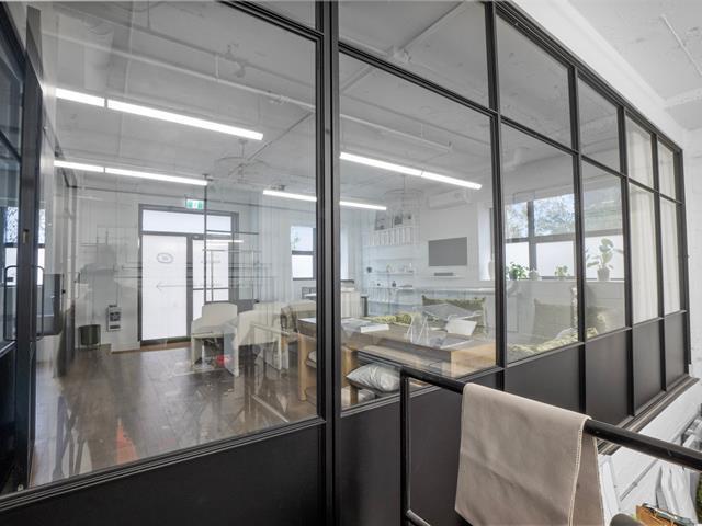 Recently renovated with modern finishes, this versatile industrial/commercial space features high ceilings, two drive-in doors, office space, and a large open area that can potentially be divided. Enjoy an outdoor parking lot and easy access to major highways, including Autoroute 25, and public transit. Surrounded by businesses, services, and amenities, it is ideal for logistics, showroom, or creative industrial use. GST/QST must be added to the asking price (45966505)