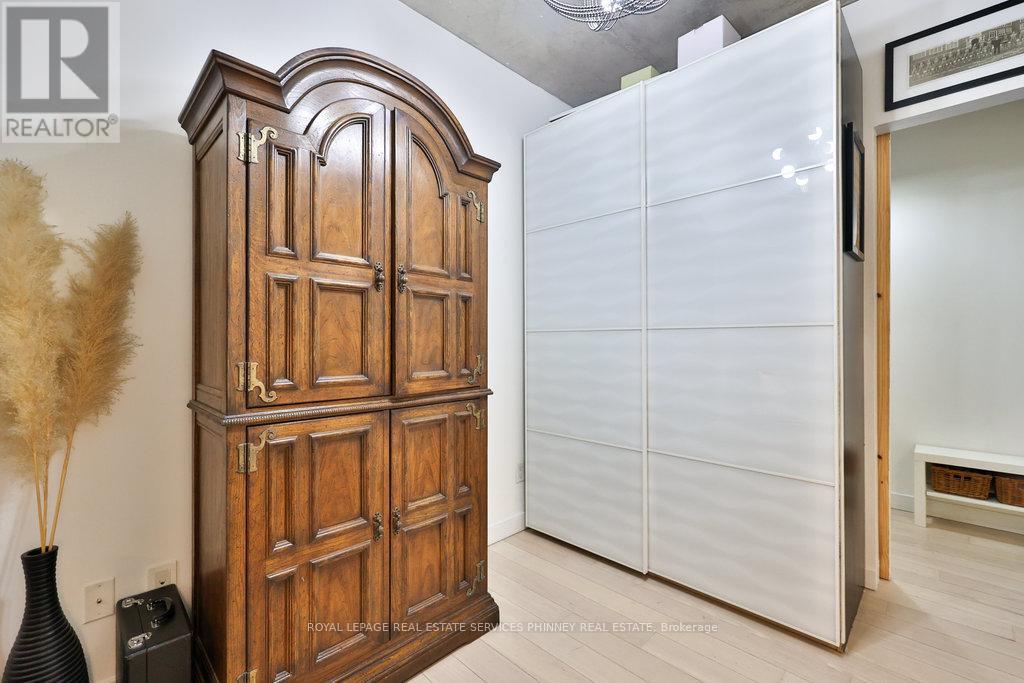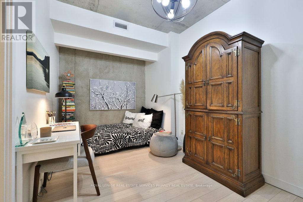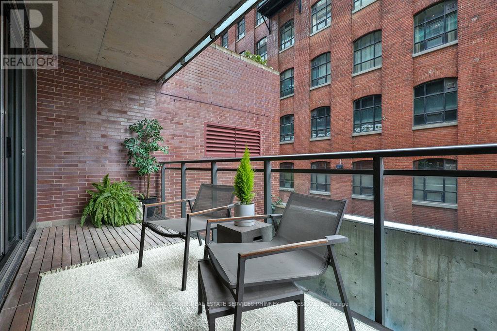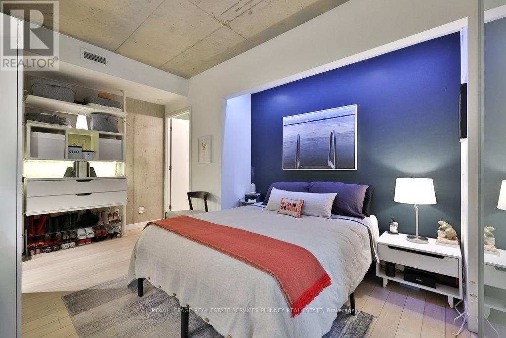 Discover modern sophistication in this meticulously designed 2-bedroom, 2 bath unit located in the highly sought-after Ninety Lofts. Spanning over 1,000sqft, this stunning residence combines industrial charm with high-end finishes and thoughtful design details throughout.Step inside to find soaring ceilings, exposed concrete walls and ceilings, and floor-to-ceiling windows that flood the space with natural light. The open-concept living and dining area is anchored by a custom fireplace and entertainment unit, creating the perfect setting for relaxation or entertaining. The chef's kitchen features stainless steel appliances, a LG gas stove, LG Mircowave, Bosch dishwasher, and a large island ideal for hosting guests.The primary bedroom offers a serene retreat with a spa-inspired ensuite featuring a soaker tub and luxurious finishes. Enjoy seamless indoor-outdoor living with a terrace spanning the width of the unit, complete with a natural gas hookup. Additional highlights include hardwood floors, internet included in maintenance fees, and access to top-tier amenities such as a courtyard terrace, party room, and concierge service.Perfectly situated in the heart of South Riverdale, this vibrant neighbourhood offers a 10/10 location-just steps from Queen Street East's cafes, restaurants, and boutiques, as well as parks, trails, and transit (TTC and future Ontario Line). Easy access to the DVP and Gardiner Expressway ensures seamless connectivity across the city.Urban living at its finest-own a piece of Toronto's most desirable boutique loft lifestyle at The Ninety. LG Gas stove and mircowave replaced 6 months ago. (41633253)