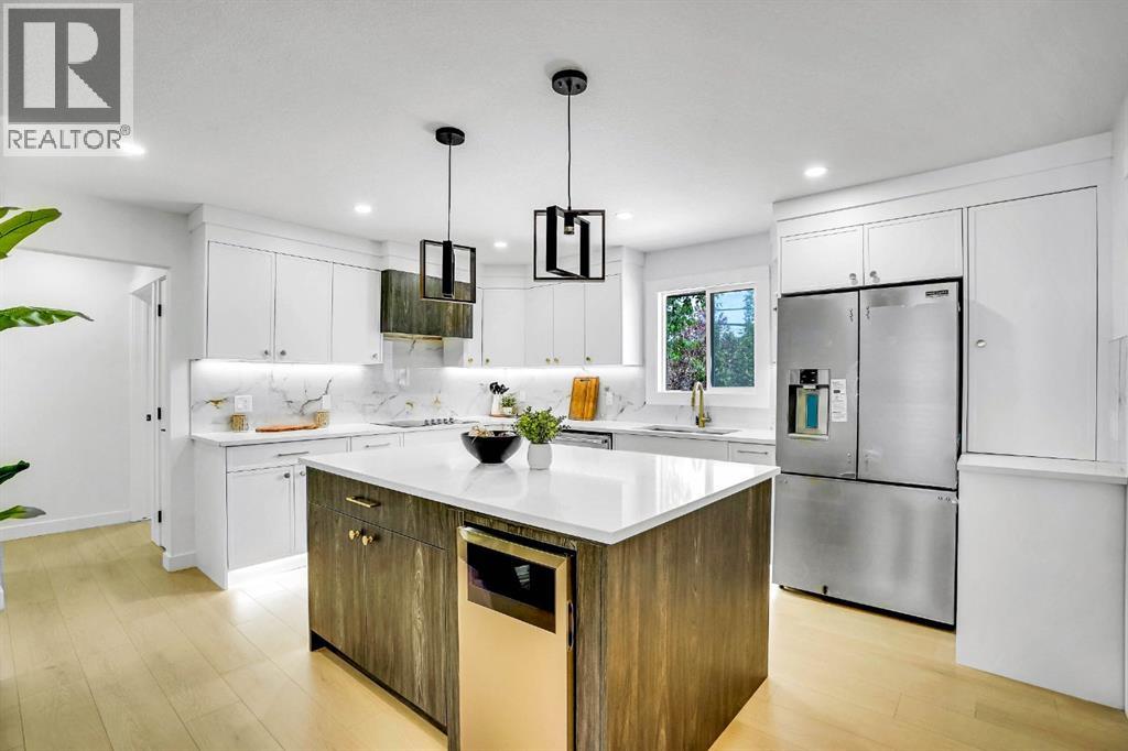 Welcome to 5016 Nemiskam Road NW, a stunning and fully renovated bungalow nestled in the highly sought-after community of North Haven. Situated just minutes from top-rated schools, charming cafés, beautiful parks, the University of Calgary, and SAIT, this home truly offers convenience and lifestyle. With nearly 1,500 sq ft of thoughtfully designed living space on the main floor, this home features 3 spacious bedrooms and 2 full bathrooms, including a luxurious primary suite with a custom walk-in closet and 3-piece ensuite. The open-concept main floor welcomes you with a beautifully crafted front foyer clad in white oak panels, leading to a bright and airy living room with a sleek electric fireplace and a bold feature wall designed to impress. The show-stopping kitchen boasts a modern two-tone design, high-end appliances including a built-in microwave, oven, and glass cooktop, gold accents, and under-cabinet and toe-kick lighting—perfect for cozy evenings. Down the hall, you'll find two generous bedrooms, a fully tiled bath, and a convenient family laundry room. Downstairs, the legal 2-bedroom basement suite offers a large kitchen, full bathroom, and separate laundry—ideal for rental income, extended family, or entertaining on game nights. Outside, enjoy your newly built garage-top flat patio—perfect for summer BBQs, parties, or quiet relaxation. The home is wrapped in durable James Hardie board for long-lasting curb appeal and protection, complemented by brand new windows throughout to keep the warmth in during Calgary’s winters. With a spacious front yard and modern upgrades inside and out, this home is truly move-in ready and waiting for the perfect family. (31361633)