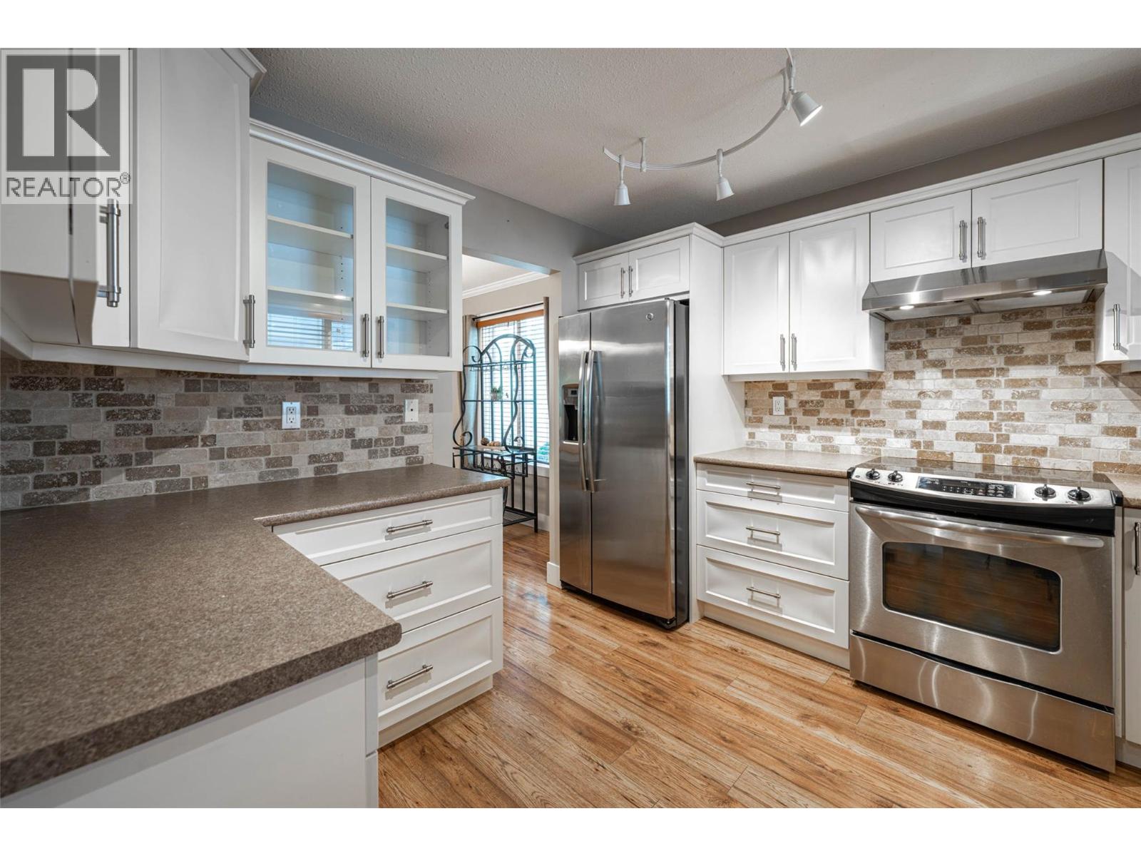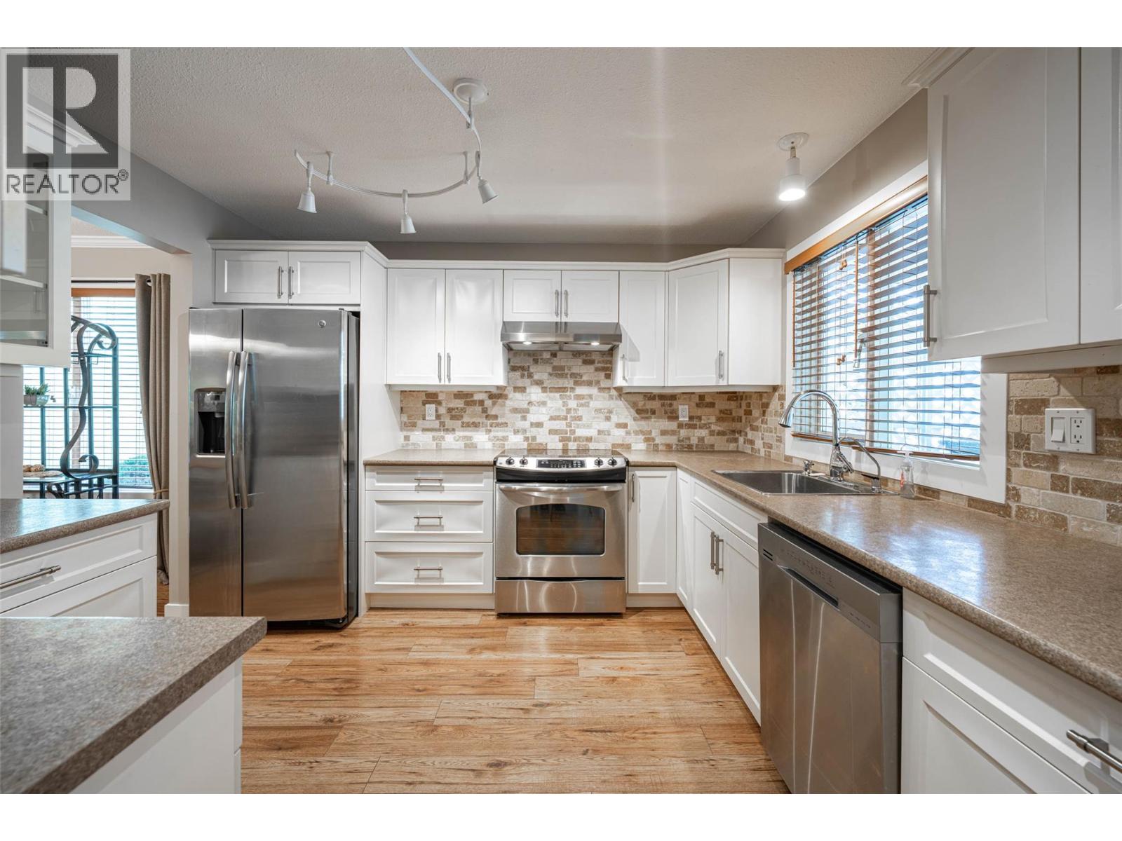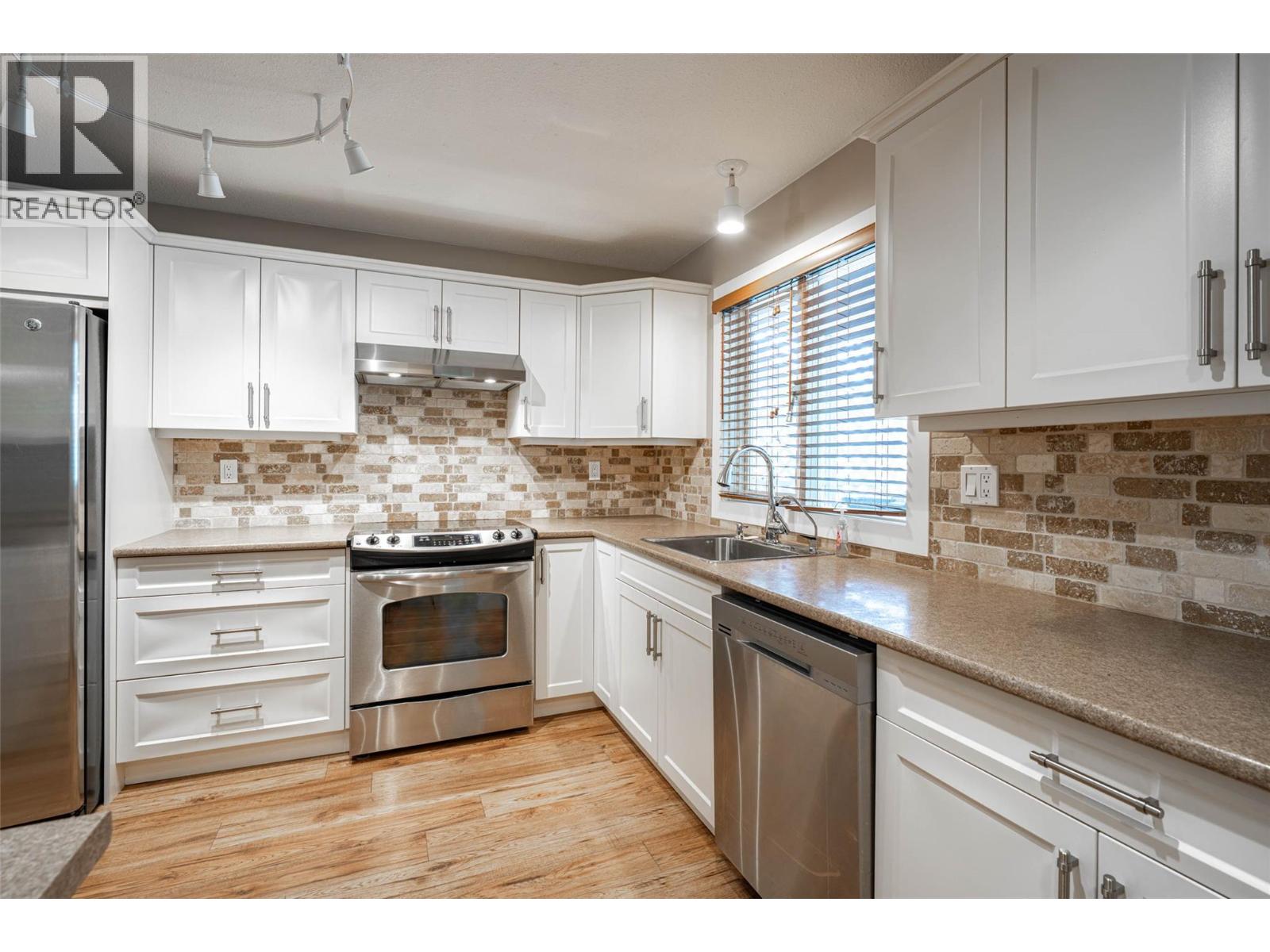 Quick possession for this 2 bed/2 bath townhome in Armstrong. Very clean home in desirable Poplar Grove Estates. This home has a very functional updated kitchen, with newer cabinets and S/S appliances. Open living and dining rooms with newer laminate flooring throughout. Primary bedroom has 3 pce. ensuite bath (shower) and walk-in closet located at the rear of the unit . The other bedroom and 3 pce bath are located near the front of the townhome. In-suite laundry located in the main hallway. Out back you will find a 10ft x 25ft covered patio and private fenced back yard. Keep the snow off your vehicle under the 16ft x 20ft carport. Well managed strata with reasonable monthly fees. Easy walking distance to shopping and services. (39463876)