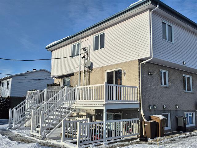 Rarity with 3 bedrooms. Renovated condo on 2 floors offering 1158 sq ft, open concept, bright, powder room with laundry, wooden floors & staircase. Upstairs: 3 bedrooms, full bathroom, 2019 Mitsubishi wall-mounted air conditioner & air exchanger. Energy Star 2023 windows, 2 parking spaces & shed. Large terrace overlooking Côté Park, with no immediate neighbors in the back or on the left side. View of Mont-Saint-Hilaire, close to services. Several improvements including attic insulation to R50, stairs 2024-2025 & rear balconies redone 2019, roof 2012. Contact us now! (47680346)