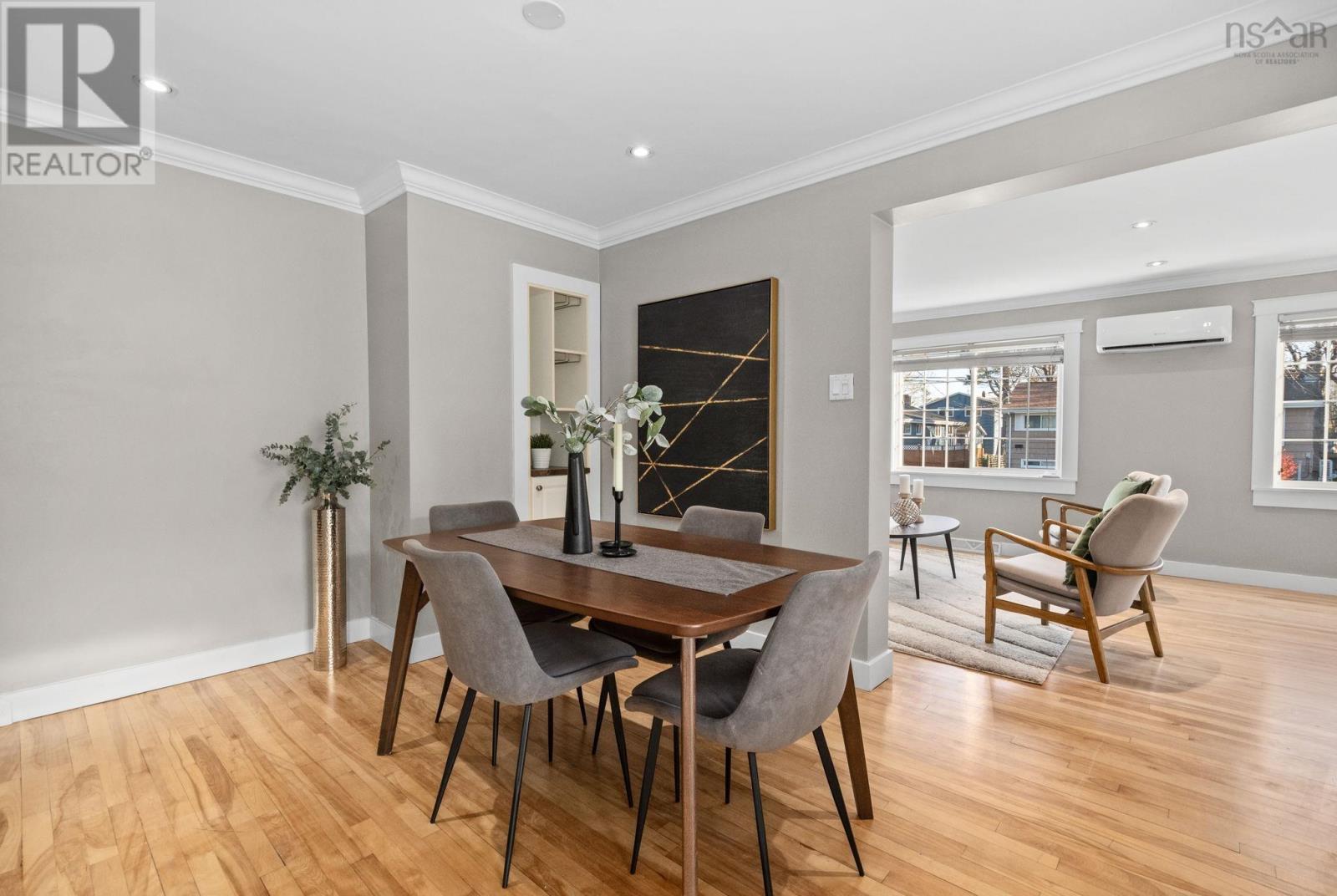 This appealing 2-storey, 3-bedroom, 1.5-bath semi-detached home offers affordable living on a lovely, mature lot in a highly desirable area of HRM, providing quick access to downtown. Upgrades include Ductless heat pumps installed in 2024 along with a brand new Propane High Efficiency Furnace. The roof was replaced in 2010, and updated sewer and water lines (2007). The main floor features an sleek and modern kitchen, a dining area, and a good-sized living room, plus an inviting sun room. Upstairs, you will find three bedrooms and an updated full bath. The lower level provides additional functional space with a rec room, a half bath, laundry facilities, utility space, and storage, making it ready for a new owner to add their personal touch. (231626040)