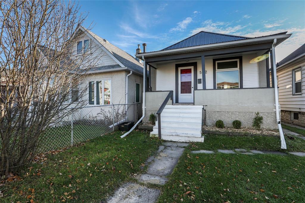 1Aw//Winnipeg/OH SAT and SUN 1:00 - 3:00 PM OFFERS ANYTIME! Over 1300 sq feet of total living space included in this bungalow with a full finished basement! Solid starter home or investment property with main floor 4 piece bath, two bedrooms up, oak hardwood floors, newer open eat-in kitchen, with updated cabinetry, and stylish slate accented backsplash. Includes stainless steel kitchen appliances and hood fan. Step out to the backyard from the eat-in kitchen to a convenient, cozy heated, private back porch with updated baseboard heating (2017). Updates include metal roof (2012) house windows (2016) full basement carpet (2022) paint (2025) 4 piece bath & newer vanity (2025) laundry HWT (Nov 2025) room and large 3rd bedroom and open family room. The updated backyard patio (2025) with chain link fencing has parking for 1/2 cars. Desirable, popular neighborhood close to schools, trendy shopping, restaurants, coffee shops, transit, and only a short commute to downtown and the to University of Winnipeg. Flexible possession is available. (231626890)