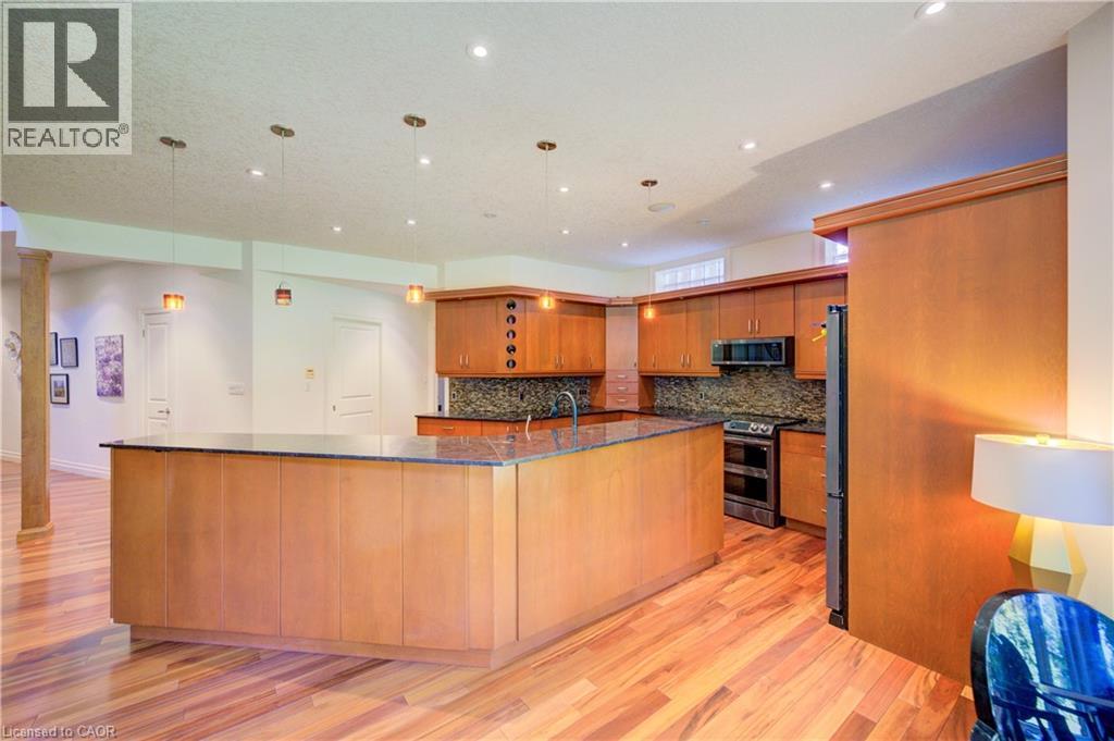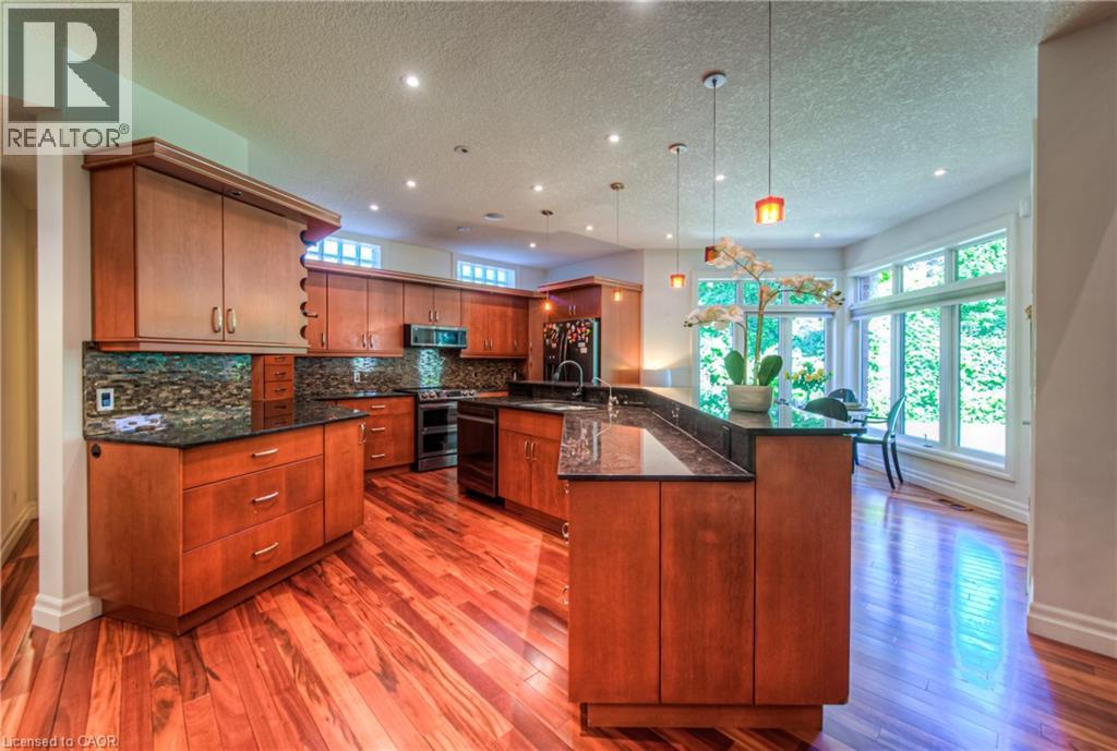 Welcome to 75 Wagon Street — An Executive Masterpiece in Deer Ridge Experience luxury living in one of Kitchener’s most prestigious communities. Nestled on a quiet, tree-lined street in Deer Ridge Estates, this exceptional executive residence offers over 5,000 sq. ft. of meticulously finished living space designed for comfort, sophistication, and effortless entertaining. From the first impression, this home captivates with its timeless brick-and-stucco façade, striking rooflines, and beautifully landscaped curb appeal. Step inside to discover an open and inviting layout where dramatic ceiling heights, expansive windows, and premium finishes create a sense of grandeur and warmth throughout. At the heart of the home is the showstopping great room, featuring a soaring two-storey wall of windows and a designer gas fireplace — a perfect balance of elegance and relaxation. The chef’s kitchen impresses with a massive island, granite countertops, custom cabinetry, built-in appliances, and a generous walk-in pantry — ideal for hosting or daily family living. The main-floor primary suite offers a private retreat with two walk-in closets, a spa-inspired ensuite, and direct access to your serene backyard escape. Upstairs, spacious bedrooms and a versatile loft provide flexibility for family, guests, or a home office. The fully finished lower level transforms everyday living into entertainment bliss, complete with a custom bar, games and media zones, wine cellar, and fireplace — perfect for memorable gatherings. Outdoors, enjoy your private backyard oasis featuring a covered porch, oversized deck, soothing waterfall, and hot tub — a rare sanctuary just minutes from city life. Located close to Highway 401, scenic Grand River trails, Deer Ridge Golf Club, and top amenities, this residence offers a lifestyle of refined comfort and prestige in one of Waterloo Region’s most coveted neighborhoods. (69886163)