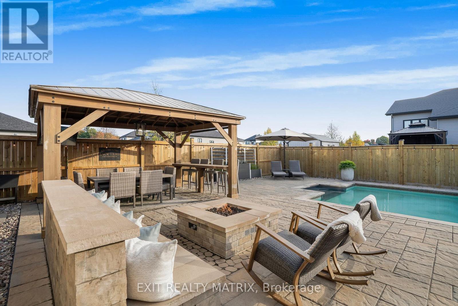 OPEN HOUSE Sat Jan 17, 12-4pm & Sun Jan 18, 12-2pm. Welcome to this beautifully updated two-storey home in the heart of Embrun. Offering 4+1 bedrooms and a host of modern upgrades, this property combines timeless charm with modern comfort. The main level is thoughtfully designed, featuring a bright and inviting living room with a cozy gas fireplace and a chef style kitchen with a center island, pantry, and abundant cabinetry. The seamless flow between spaces makes it perfect for family gatherings and hosting guests. Upstairs, the spacious primary suite includes a walk-in closet and ensuite. The finished basement expands the living space with oak stairs, a stylish wet bar, and a second fireplace an entertainers dream. Step outside to your private backyard retreat. This fully landscaped corner lot showcases a heated saltwater inground pool, hot tub, two gazebos, natural gas outdoor fireplace, gas BBQ hookup, and interlock with firepit and seating. The front yard was refreshed with new interlock and landscaping, adding striking curb appeal. Other updates include a modern laundry room and many thoughtful upgrades throughout, ensuring comfort and peace of mind. Every detail reflects pride of ownership and care. This is a great opportunity to own a gorgeous home in excellent condition, offering elegance, lifestyle, and exceptional entertaining spaces in a growing, sought-after community. (41640653)