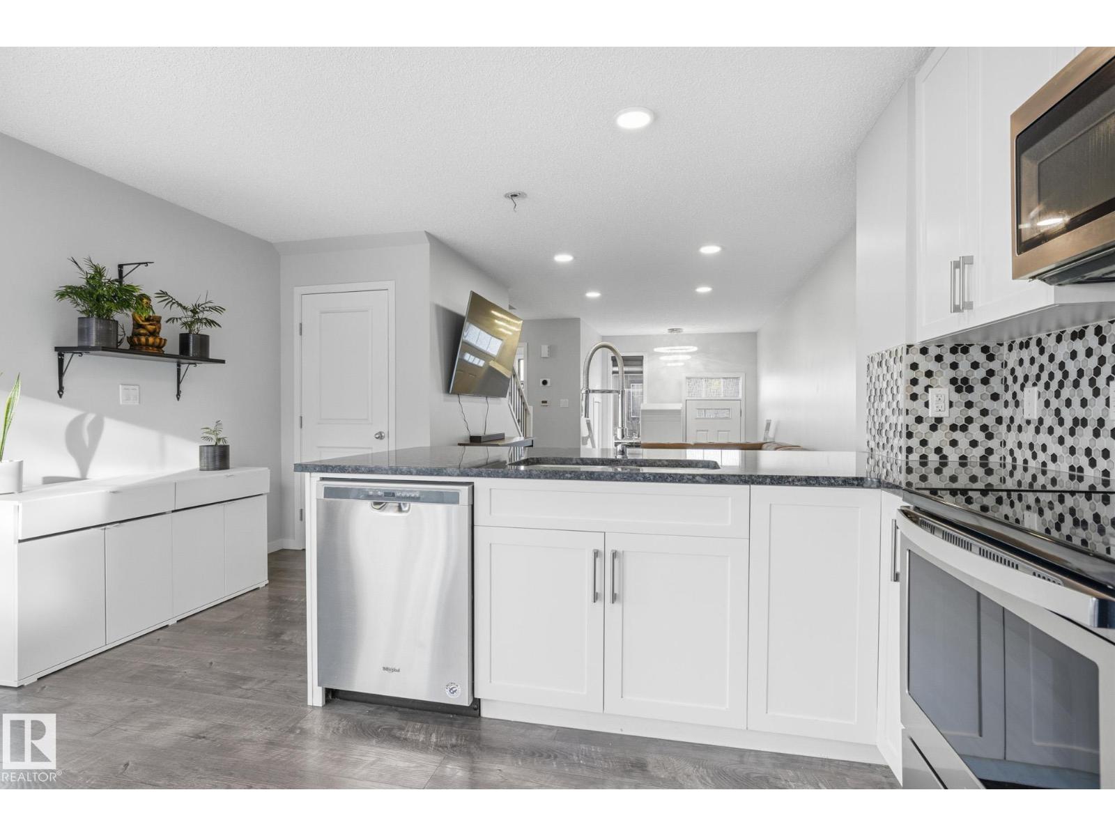 Welcome home! This pet-friendly END UNIT townhome on a corner lot is ideal for first-time buyers or those entering the rental market. Both spacious bedrooms feature their own ensuite bathrooms. The bright, modern, and stunning kitchen boasts matching stainless steel appliances, granite countertops, porcelain white cabinets, and fresh paint throughout the main floor. Rich vinyl plank flooring and large vinyl windows create a warm, bright, and inviting space with no shortage of natural light! The tandem garage accommodates two cars with plenty of visitor parking right outside your door. The location? Couldn't be any more perfect! You've got walking trails any direction you choose, ample shopping nearby, schools, public transit, and more! Whether you're a couple, a fur-parent, or a small family... this is the home for you! (33565126)