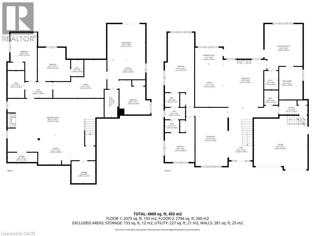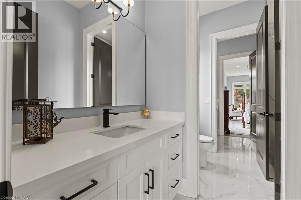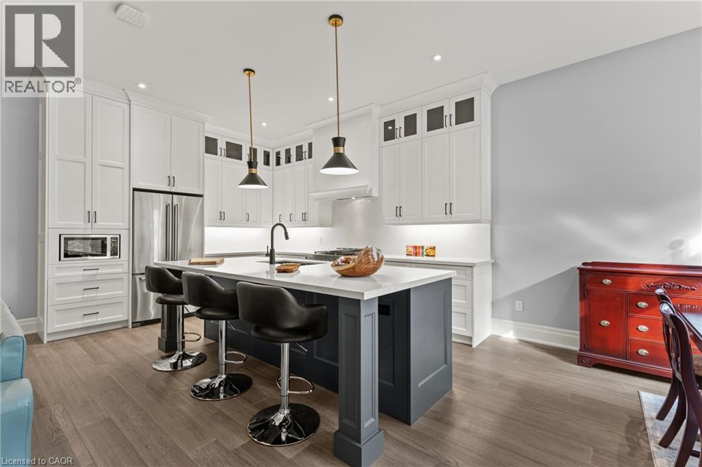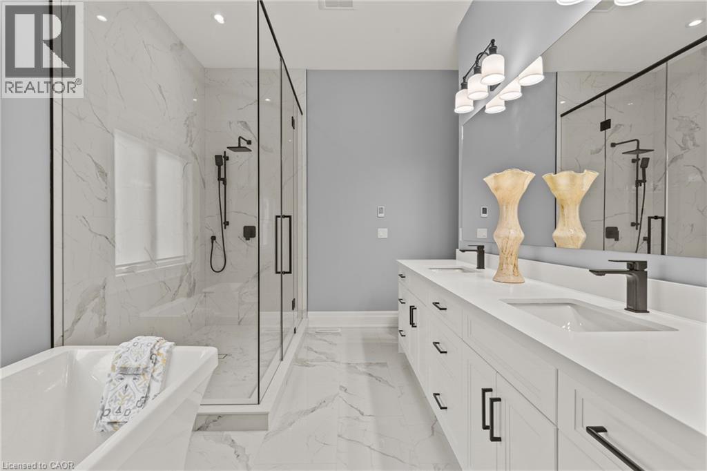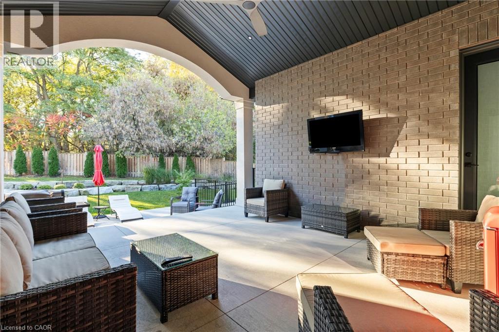 This luxury custom-built 2580 sqft bungalow offers exceptional craftsmanship, elegant design, and highly functional multi-generational living spaces throughout. Fully finished basement makes it nearly 5000 sqft finished! Designed with versatility and comfort in mind, the home features three complete kitchens each finished with custom cabinetry, quartz countertops, premium appliances (two gas ranges and one electric), three refrigerators, three dishwashers, and built-in microwaves-perfect for hosting large gatherings or offering private, independent living for extended family members. The main level showcases 12-foot coffered ceilings, engineered hardwood flooring, custom roller blinds, and beautifully appointed living areas highlighted by two gas fireplaces. For added everyday comfort, the home includes heated tile floors in three bathrooms and the lower-level kitchen. A self-contained 1-bedroom granny suite with its own entrance and dedicated parking provides privacy and flexibility, while the fully finished lower level includes two additional bedrooms, a full bathroom, a walk-out, and a spacious walk-in fruit cellar. The property features two full laundry rooms, each equipped with washer, dryer, laundry tub, and storage. Additional upgrades include Russound integrated sound and satellite wiring, a full security camera and alarm system with monitoring option, and an in-ground sprinkler system for effortless exterior upkeep. The home is fully fenced, professionally landscaped with thoughtful rock and garden design, and includes a covered outdoor porch to enjoy peaceful surroundings in every season. Every detail - from cabinetry to ceiling design to layout functionality - reflects the care put into creating a home that is both luxurious and deeply livable. This is a rare offering that combines elevated finishes, spacious design, and true multi-use living under one roof, providing comfort, privacy, and long-term value for its next owner. (69885920)