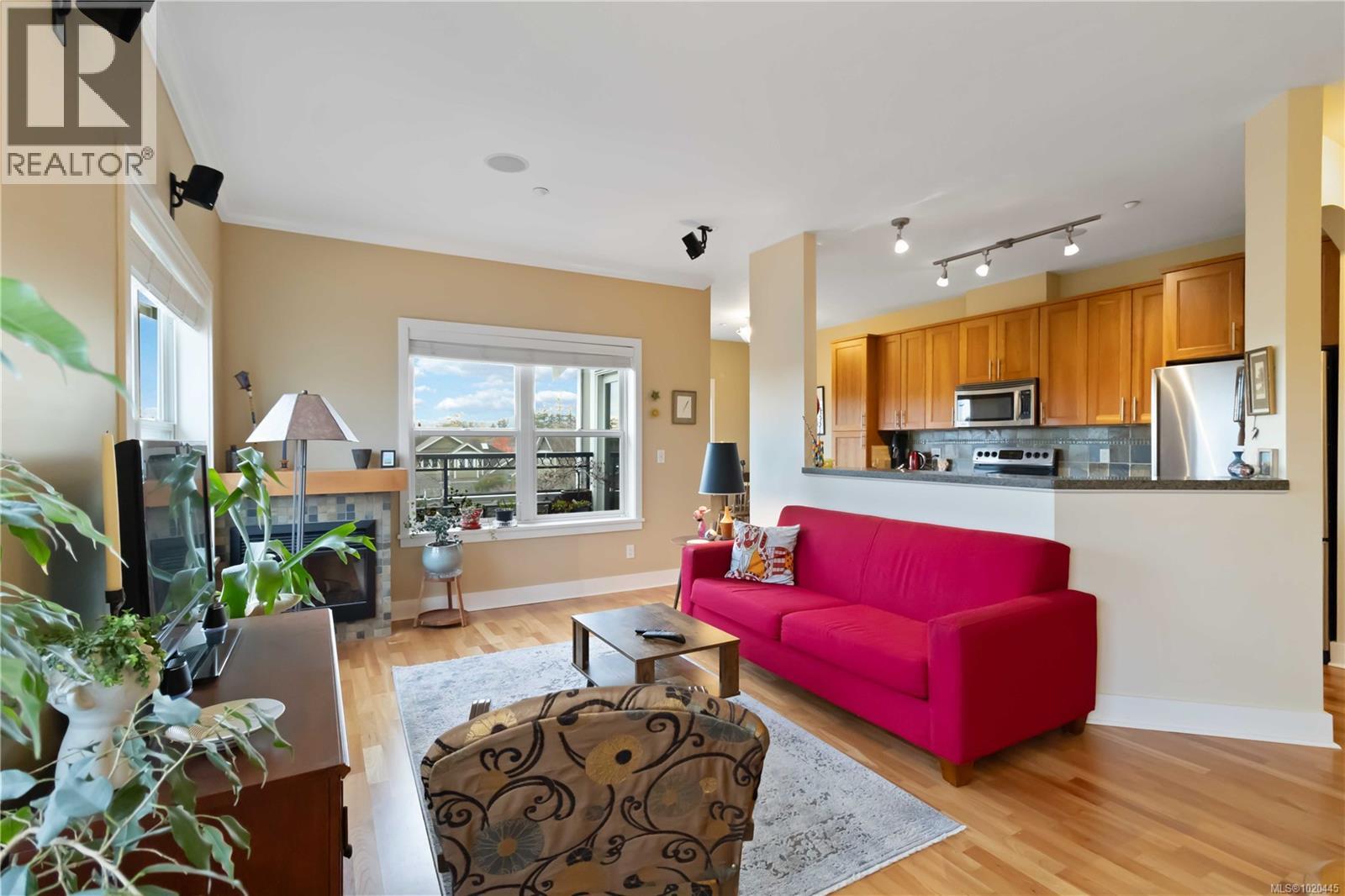 Welcome to The Meadows! - a prestigious, quiet, 55+ gated community with extremely low turn-over, in north Sidney near Tsehum Harbour. This coveted condo is the prime unit of the complex, situated on the top floor corner with South, East and West exposures, offering a thoughtful single-level layout with 2 bedrooms, a den, and 2 bathrooms. The kitchen features granite counters, stainless steel appliances, tile backsplash, and high quality wood cabinetry, while the main living space includes engineered hardwood floors, a spacious dining area, and an electric fireplace. The primary bedroom has a walk-in closet and 3-piece ensuite. The complex includes a large clubhouse with a full kitchen for entertaining and events, fitness room, and bookable guest suite. Pets are welcome, parking is covered and secure, and you’re a short walk to Lillian Hoffar Park, Resthaven Park, the beach, walking trails, and marinas and the ocean. (30122870)