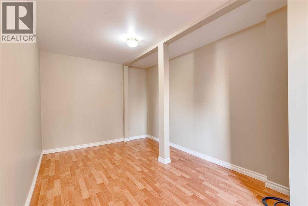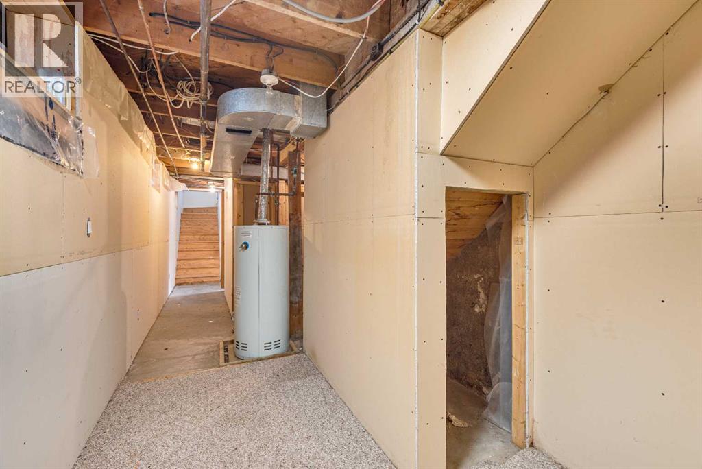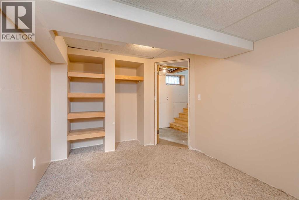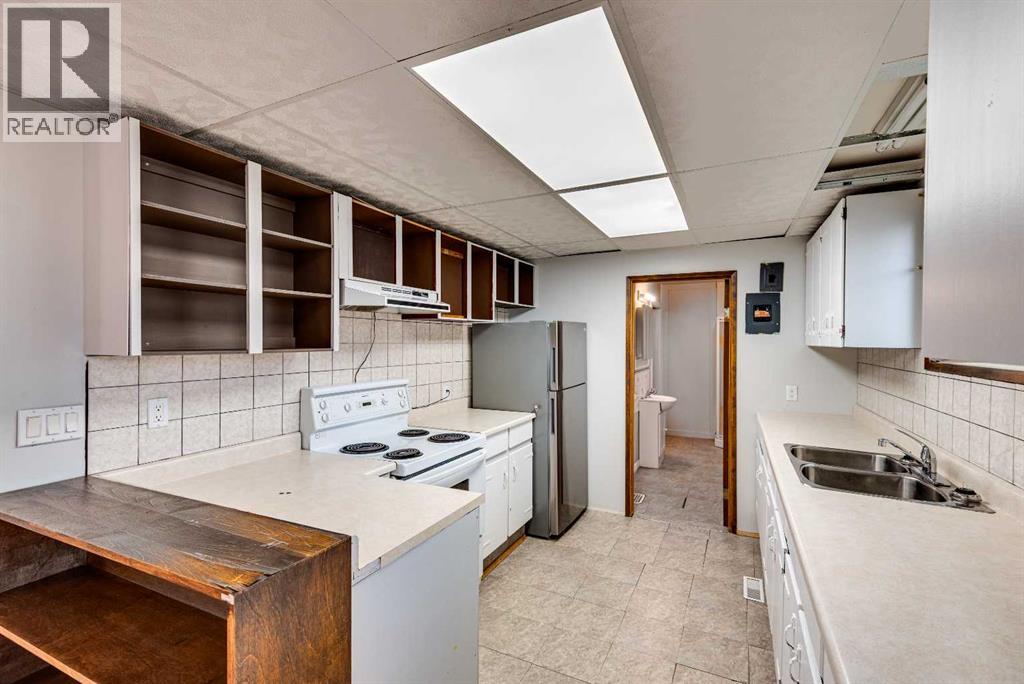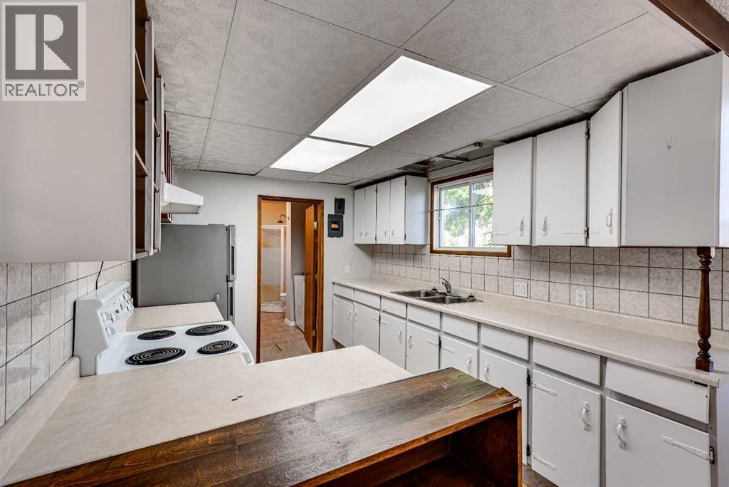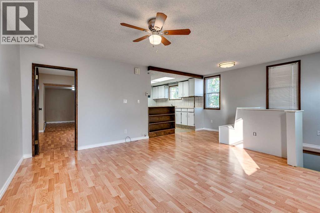 Take a little history lesson with this home... The unique construction and floor plan make sense once you learn that this house was once MD of Ghost Pine office and was also Trochu Valley School house, for K-3. before the school expanded in the 1950s. The main floor boasts a bedroom with attached office, a cozy open concept kitchen living room and dining room, main floor laundry and 3 piece bath. The dining room has a built in breakfast nook bench. Stepping to the basement, with 2 bedrooms and a space plumbed for a bath, as well as large utility room this basement has front and rear access. The garage has an over tall door and a regular door and is 27X27 ft. An amazing space for your projects and cool cars. The yard is simple, large and waiting for all your dreams. = (31373139)