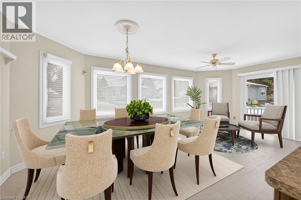 Dining & sitting area with bright windows, upgraded shades, patio door to wrap around deck.