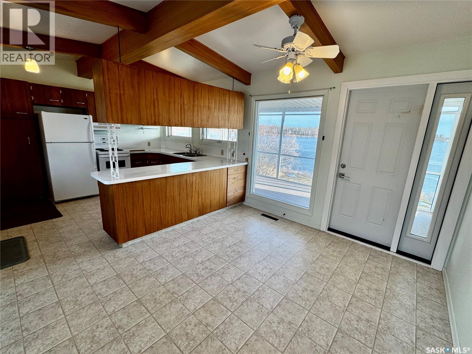 Welcome to 112 Crescent Lake Road in Saltcoats SK! This mid century modern designed lakefront home gives you the feel of living at the lake on one side and being part of a friendly Saskatchewan town on the other. Driving up to the property you will be welcomed to a concrete driveway with covered parking. Two entry doors give you the option of entering in the kitchen area or porch/hallway area of the home. The main floor has an excellent layout featuring a large living room with breathtaking views of the lake with east facing windows. A few steps over will take you to the kitchen and dining room area. The kitchen features lots of windows for natural light with included fridge and stove. Enjoy meals in the dining room area with direct entry to the east facing 8x20 sunroom. There is an open spot on the north side of the sunroom to put a bar b q or smoker. Down the hall will bring you to three excellent sized bedrooms with ample closet space. The main floor living area is completed with a 4-piece bathroom. Down the stairs you will be welcomed to a large rec room area featuring natural sunlight from the large windows and carpet. The lower level living space is completed with a 2-piece bathroom (recently updated) and a laundry/storage room. The laundry/storage room has direct access to the back yard. The utility/storage part of the lower level includes HE Gas Furnace (2024), gas water heater, 100 amp service, central air, back flow valve, central vac, fridge, and freezer. Moving outside, the property sits on .62 of an acre. With the house being on one of the lots, it will be easy for the new owner to subdivide and sell the extra lot if not needed. Other features of the yard include lawn, garden area, partial fencing, and amazing lakefront views. Saltcoats SK is located 15 minutes east of Yorkton SK. There is a K-8 Public school in Saltcoats. Grades 9-12 are bussed to Yorkton SK to Yorkton Regional or Sacred Heart High Schools. Not for rent or rent to own. (29127587)
