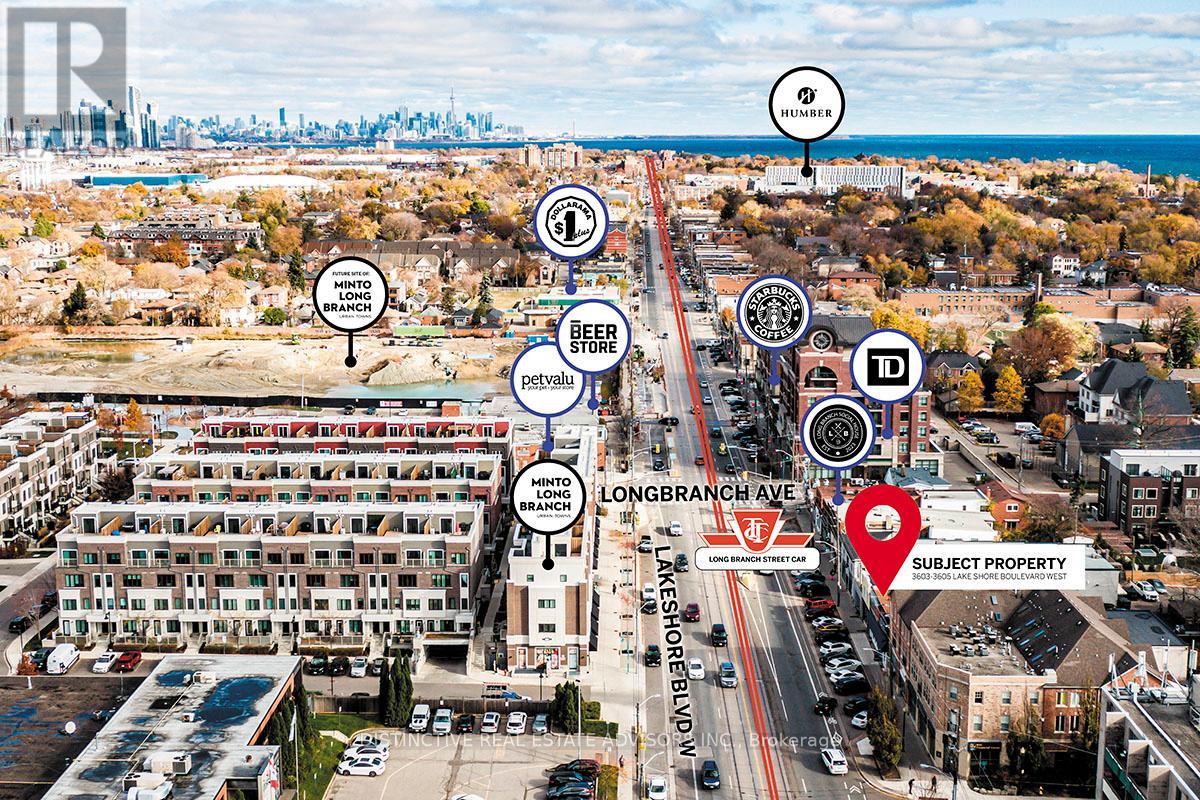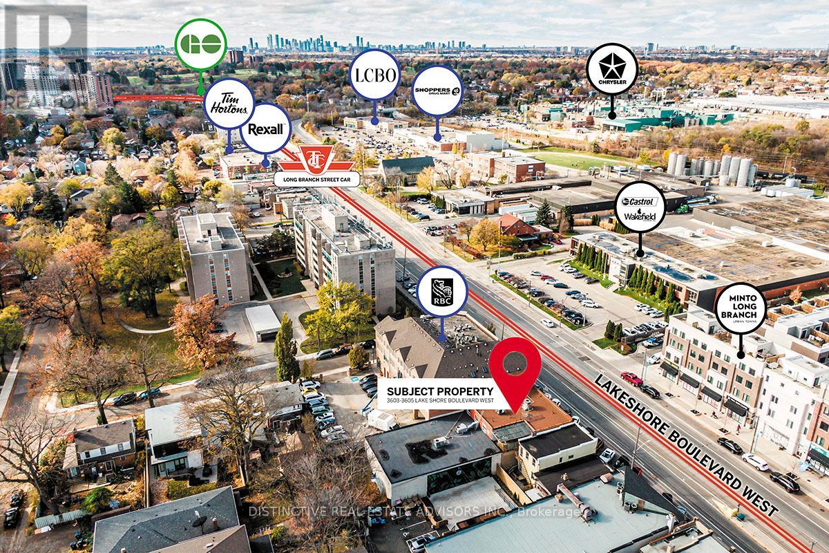 41 High Visibility Signage Opportunity on Lake Shore Blvd W with pedestrian traffic and TTC at your door! Located at the busy intersection of Lake Shore & Long Branch, this building features ground floor and second floor units that can be leased together or separately, and each have their own private streetfront entrance. The Ground Floor has 5,392 SF of fully-renovated retail space with large windows providing display opportunities and tons of natural light, high-end finishes, glass partitioned offices, a built-out reception area with back office space and a handicap accessible washroom as well as plenty of space, as well as access to 2,231 SF of basement storage space. The Second Floor features 1,883 SF of Office Space as well as a 287 SF Private Outdoor Patio Space with seven (7) private offices, a huge waiting area and separate reception space, a kitchen and two (2) private washrooms. Recently upgraded mechanicals in the building ensure low operating costs. Located on Lake Shore near Humber College and Long Branch GO with newly constructed residential homes in the area, and other complementary retailers to drive traffic to your business. Streetfront parking and limited parking available at the rear of the building. (41650752)