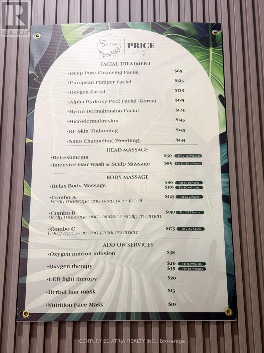 Price to sell! Don't miss this incredible opportunity to own a modern, fully equipped spa in the heart of Vaughan, one of the GTA's fastest-growing. Welcome to Centro Square, An Exceptional Mixed Used Development Business For Sale In The Heart Of Vaughan. Conveniently located in a busy plaza surrounded by established businesses, restaurants, and residential communities, this spa enjoys steady foot traffic and loyal clientele. Great Opportunity For You To Own Your Business. Next To New Subway Station, Right On Ext of Highway 407, Highway401 and Highway 7. Surrounded By Home Depot, Best Buy, Costco, And Many Others Shops and Restaurants. The space features a beautifully designed interior with elegant finishes, multiple treatment rooms, and a welcoming reception area all in excellent condition. It is turnkey and ready for immediate operation, offering the flexibility to either continue the current business model or introduce your own brand and services. Ideal for beauty professionals, investors, or entrepreneurs looking to step into a thriving wellness industry. The Unit Located Right Beside The Food Court. Open To Many Uses, Ample Covered Parking Provides Year-Round Protected Access. Don't miss out on this high-potential opportunity! With a strong foundation, consistent cash flow, and everything set up for success, this is your chance to own a profitable spa in a prime Vaughan location. Opportunities like this are rare take advantage of this ready-to-go setup and make it your own! (41651970)