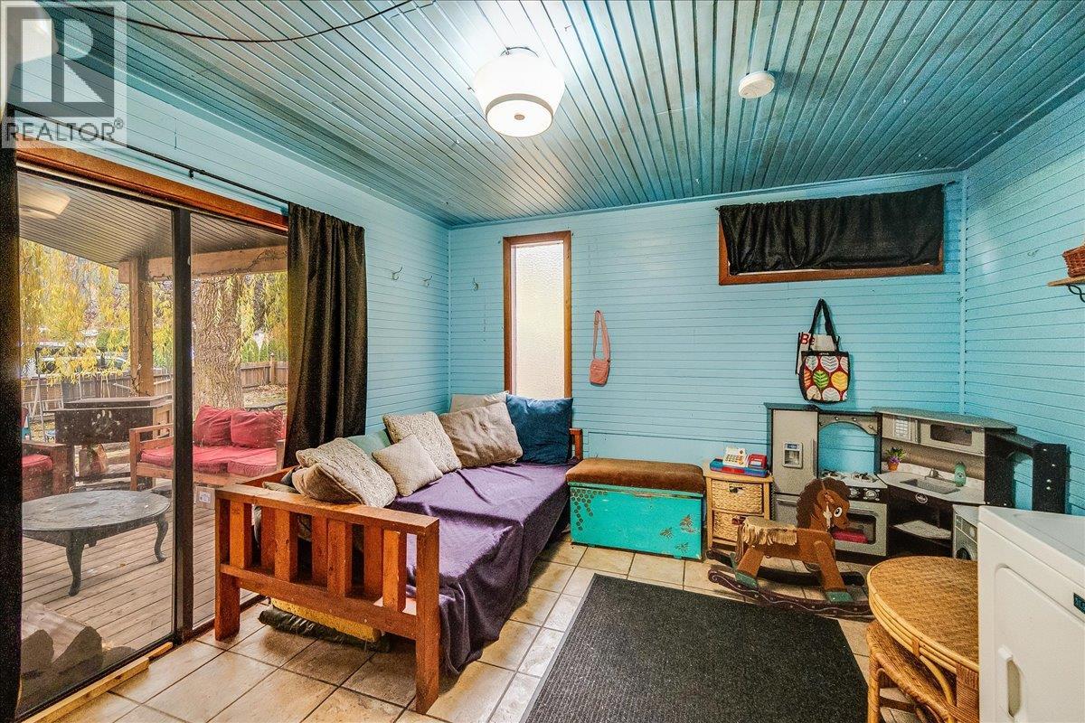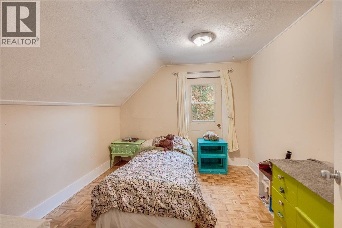 Welcome to a solid family home on an extra-wide 75' x 100' lot—an uncommon find in Nelson and a huge bonus for anyone needing space to grow, garden, or simply enjoy a larger yard. The property is level, fully fenced, and nicely landscaped, giving it a comfortable and private feel. The main floor has a warm, inviting layout with a generous living room anchored by a classic wood-burning fireplace—the perfect spot to settle in on chilly winter evenings. The living and dining spaces flow easily together, and patio doors lead out to a covered, south-facing deck that works beautifully for year-round outdoor lounging. Hardwood floors run throughout the main level, and the bright kitchen includes a cozy eating nook for casual meals. You’ll also find a full bathroom, interior access to the basement, a practical mudroom/laundry area off the deck, and a covered front porch. Up the original wood staircase is a renovated primary bedroom with a small walk-in closet and a flexible sitting or craft area, plus two additional bedrooms down the hall. At the back of the property sits a detached garage building—ideal for storage, a future workshop, or a hobby space. With its oversized lot, central location, charming details, and that inviting fireplace, this home offers everyday practicality with the character and comfort families appreciate. A great opportunity with room to make it your own. (39475266)