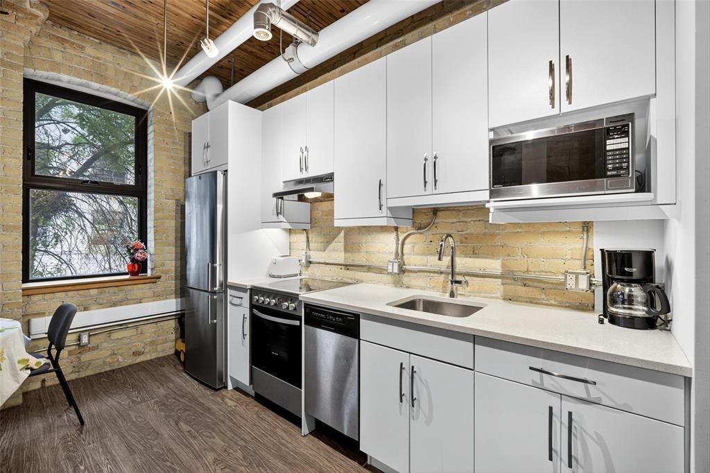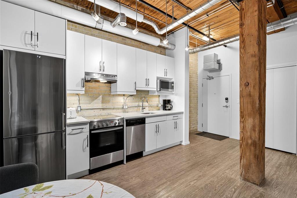 9A//Winnipeg/Showings Start NOW | Offers ANYTIME! | This charming and historic building is renowned for its prime location. With exposed original brick walls, timber beams, and triple pane windows, this is the perfect blend of brand new, while restoring the character we all love! This 1 bed, 1 bath unit features in-suite LAUNDRY, AIR CONDITIONING, PET-FRIENDLY, and included OVERSIZED STORAGE unit, this unit has it all!! Plus, PARKING is available for rent! PLUS, condo fees include HEAT and HYDRO!!! No extra costs here!! For investors, this building is an excellent choice, as it allows for short-term rentals with occupancy rates of up to 90% possible @ $125/night!!!! In 8 months, this unit has pulled in just under $15,000 of income!!! At this price point, you are better than the investors 1% rule! Incredible! Amenities include a gym and a party room with a billiards table. The private views are among the best in the complex, making this unit a must-see!! (231636286)