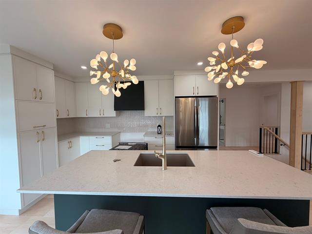 *** Location *** Maison très moderne entièrement rénovée en 2025. Magnifique cuisine au design contemporain avec îlot central et comptoirs en quartz. Plancher de bois d'ingénierie, hall d'entrée fermé avec garde-robe, salle de bain avec bain autoportant et douche séparée. Sous-sol entièrement aménagé offrant deux chambres supplémentaires, une salle de lavage et une deuxième salle de bain. Toutes les céramiques sont chauffantes (sauf dans le hall d'entrée). Plusieurs améliorations récentes : borne de recharge 2025, isolation 2025, peinture 2025, thermopompe 2025, toilette intelligente avec bidet et plus. Enquête de crédit et références exigée (49709123)