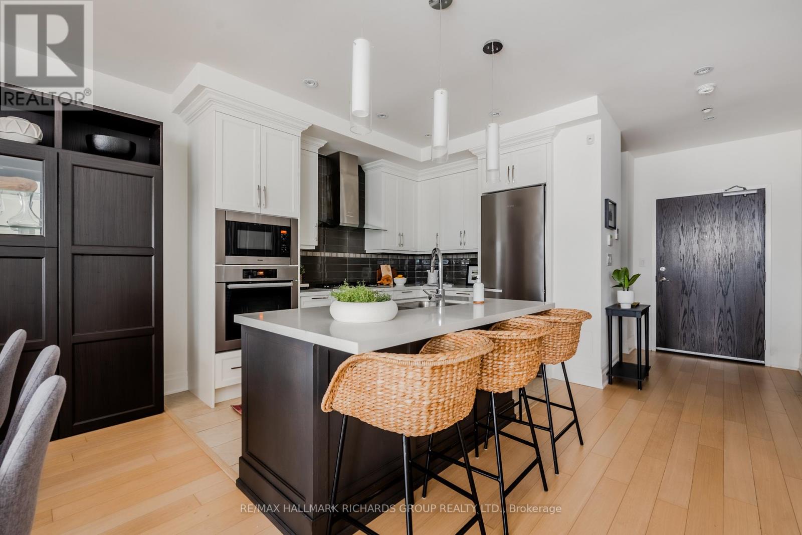 In the heart of The Beach and moments to the water, this rare 1402 square foot condo delivers scale, light and a natural sense of calm. Designed for comfort and elevated daily living, the layout offers two spacious bedrooms plus a secluded den with pocket door that creates the ideal work from home or quiet retreat. The open concept kitchen is equipped with stainless steel appliances, a gas range and a centre island that flows naturally into the living and dining areas. A gas fireplace anchors the room and adds warmth in both mood and function. Walk-out to a private south facing terrace that extends the living space and offers a great space for a morning coffee. The primary suite is a standout: Wall to wall windows. Custom walk in closet. Spa inspired four piece ensuite. The second bedroom provides generous proportions and flexibility for guests or growing needs. With underground parking, a locker and boutique building living, this is a rare opportunity to call one of the most coveted pockets of the Beach home. (41662001)
