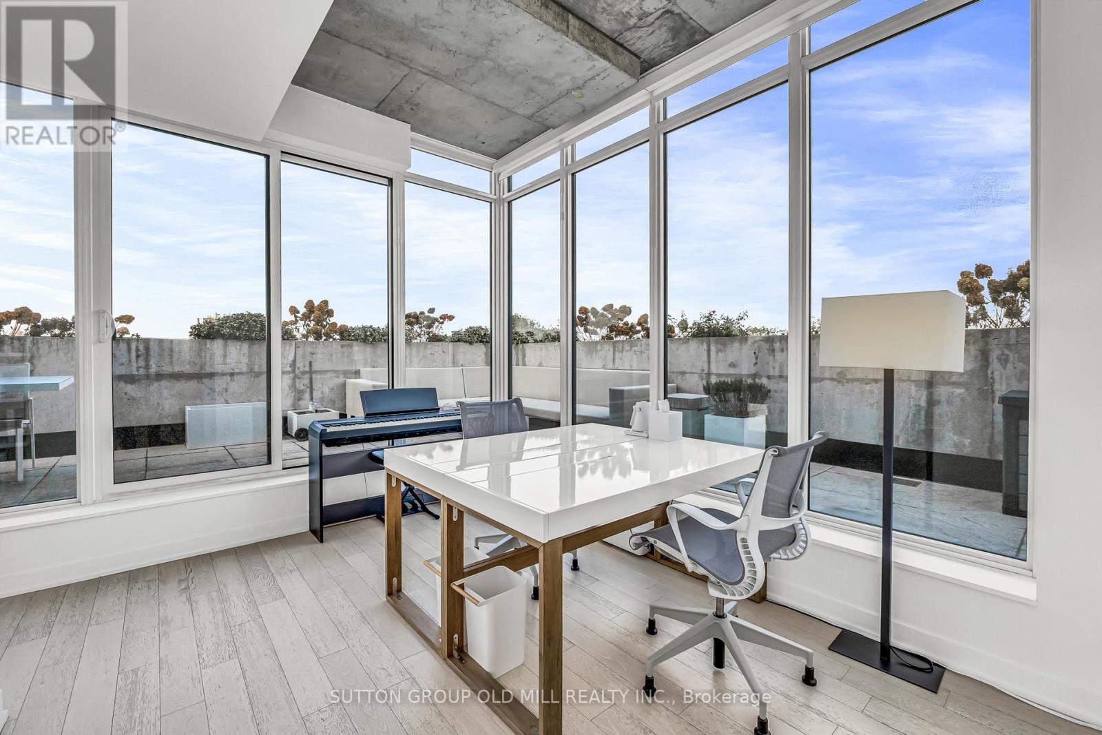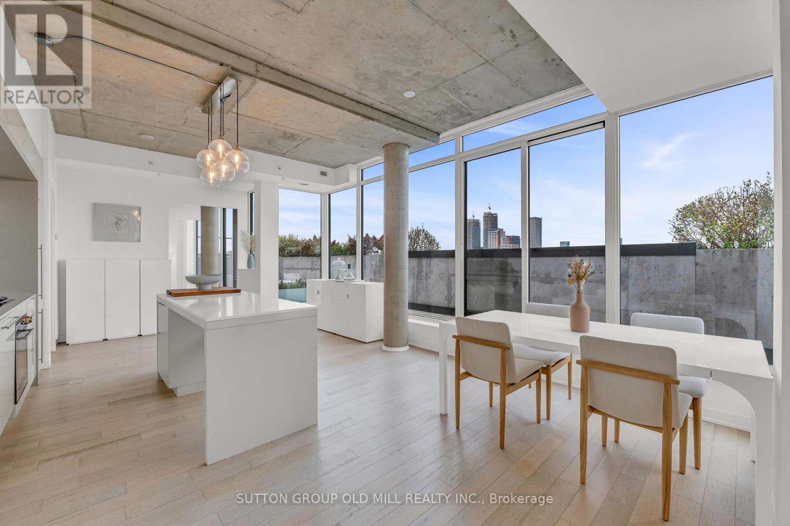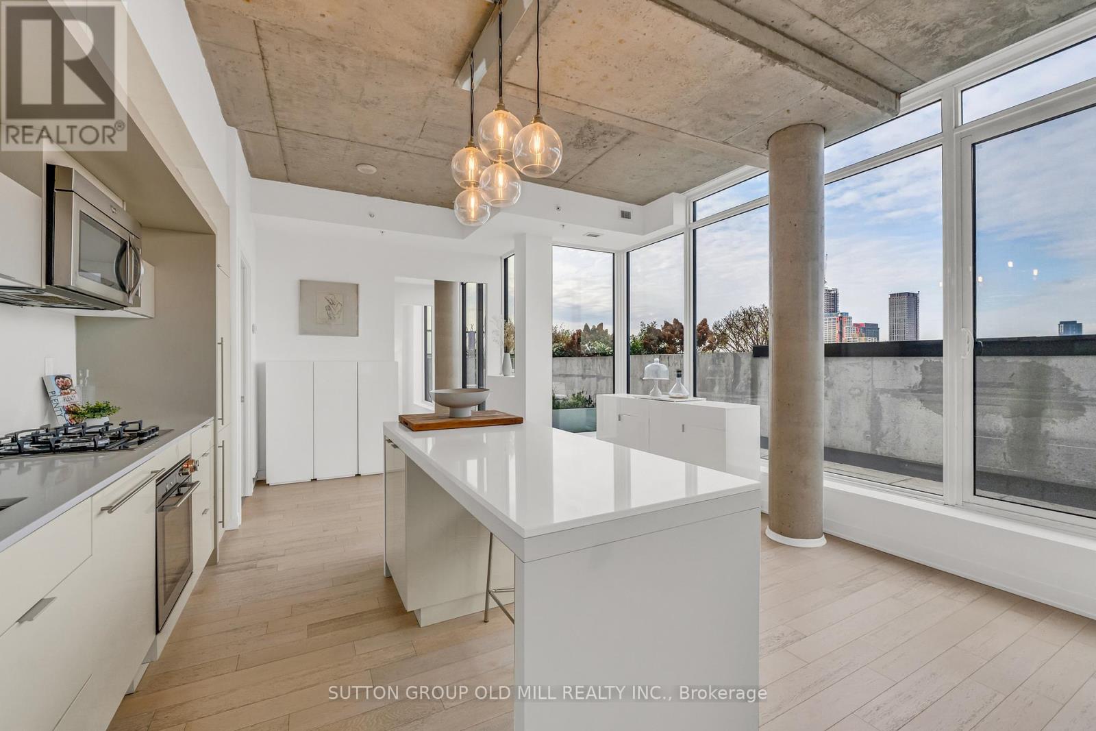 Rarely offered and undeniably one of a kind. This sub-penthouse corner suite at the IT Lofts redefines indoor-outdoor living with an expansive 645-square-foot wraparound terrace that feels more like a private backyard in the sky. Framed by uninterrupted treetop and skyline views, this sun-drenched residence delivers the privacy and serenity of a home - without the maintenance. Spanning over 1,250 square feet, the layout is beautifully balanced for both entertaining and everyday living. Floor-to-ceiling windows wrap the suite in light, accentuating the brushed oak floors, exposed concrete ceilings, and minimalist design aesthetic. The sleek, open-concept kitchen features integrated appliances, a gas cooktop, and an oversized island that makes cooking - or cocktails - a social event of its own. Each of the two bedrooms enjoys its own ensuite, offering the ideal split-bedroom plan for privacy and the primary bedroom boasts two walk-in closets. A discreet powder room serves guests, while the second bedroom doubles as a bright, inspiring home office for those who work - or create - from home. Outside, the terrace steals the show. Designed for true outdoor living, it features a direct gas line for BBQs, lush landscaping, and ample space for dining, lounging, and entertaining under the open sky. It's the kind of space rarely found in the city - expansive, private, and endlessly inviting. Set within a quiet seven-storey boutique building that occupies one of College West's most vibrant pockets, this home blends urban sophistication with neighbourhood charm. Walk to the cafés, restaurants, and shops of Little Italy, Dufferin Grove, and Ossington - or stay in and watch the sunset from your terrace. Welcome to 130 Rusholme, Suite 601 - where contemporary design meets effortless luxury. Welcome Home. For additional pics, virtual tour and floor plan check out: www.130Rusholme.com (41667441)
