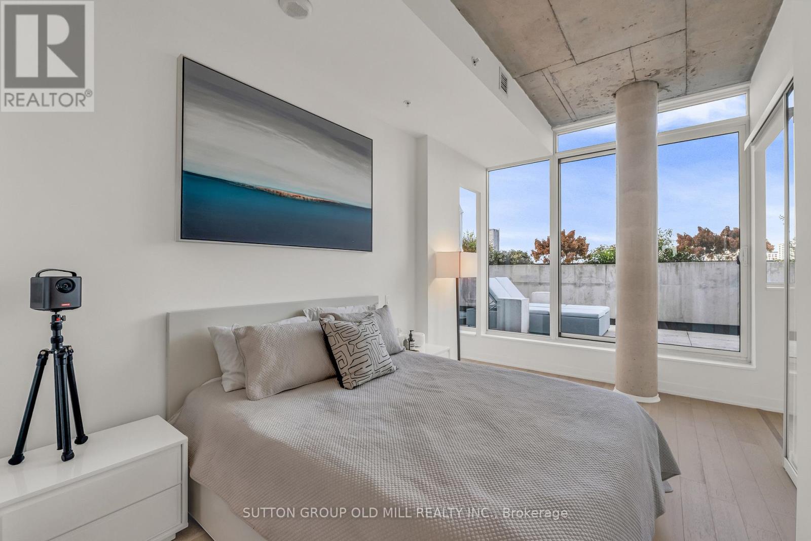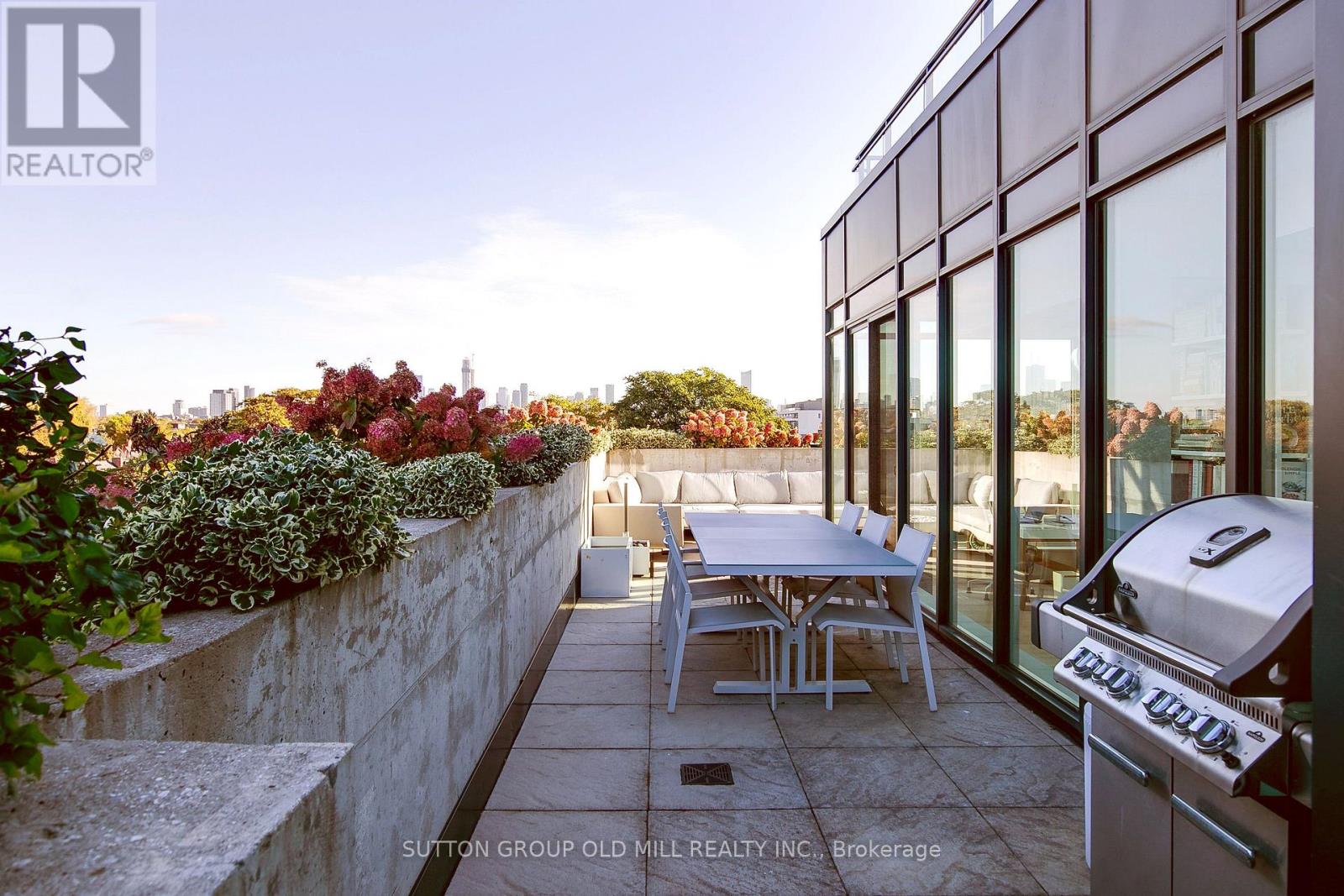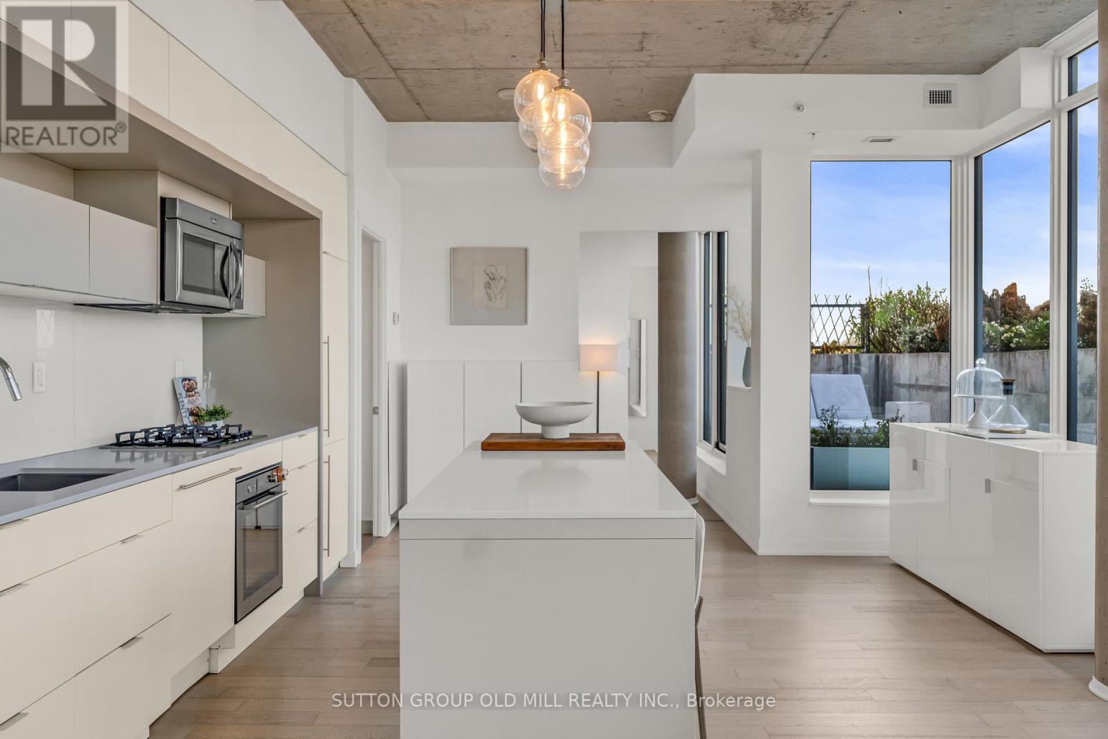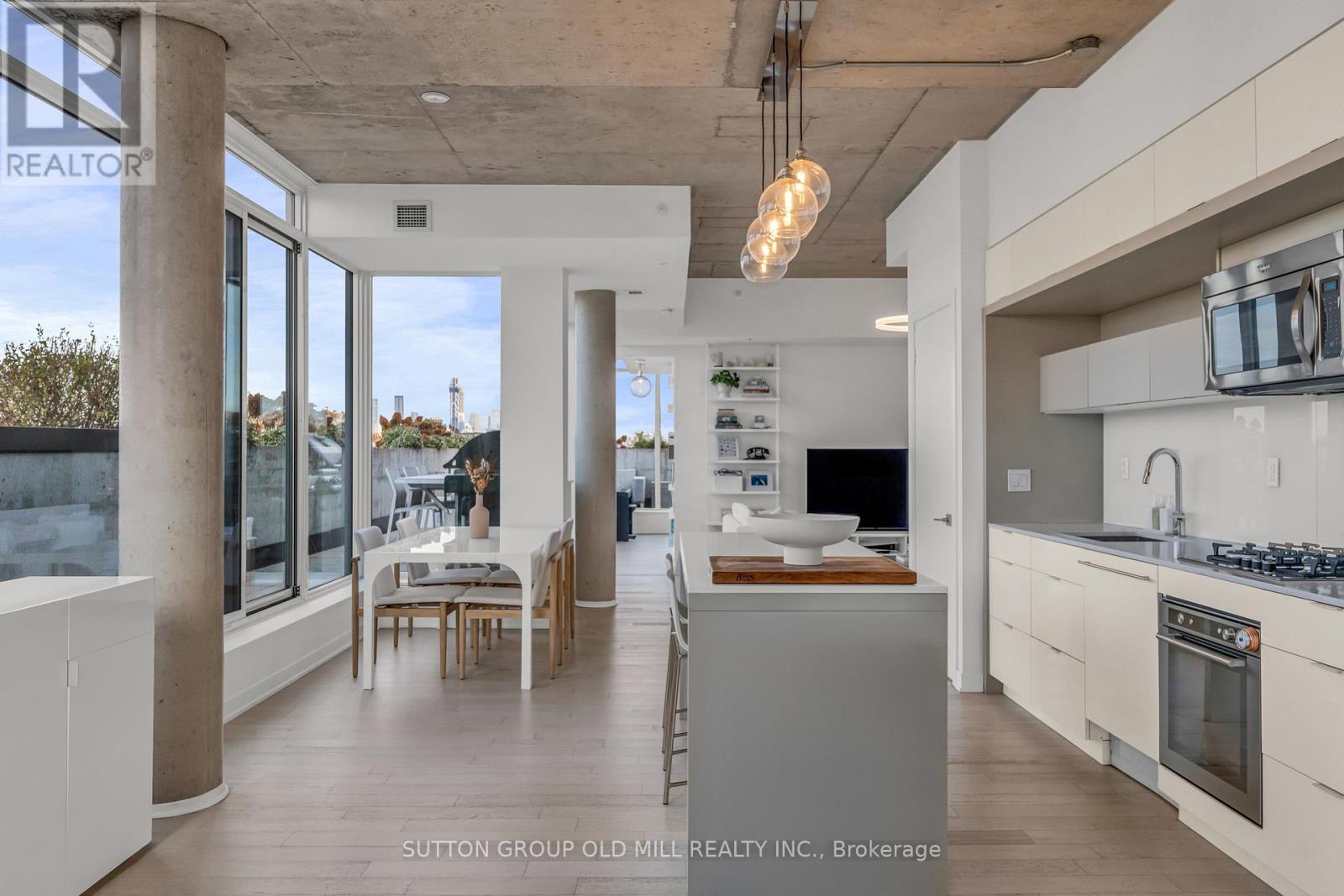 Rarely offered and undeniably one of a kind. This sub-penthouse corner suite at the IT Lofts redefines indoor-outdoor living with an expansive 645-square-foot wraparound terrace that feels more like a private backyard in the sky. Framed by uninterrupted treetop and skyline views, this sun-drenched residence delivers the privacy and serenity of a home - without the maintenance. Spanning over 1,250 square feet, the layout is beautifully balanced for both entertaining and everyday living. Floor-to-ceiling windows wrap the suite in light, accentuating the brushed oak floors, exposed concrete ceilings, and minimalist design aesthetic. The sleek, open-concept kitchen features integrated appliances, a gas cooktop, and an oversized island that makes cooking - or cocktails - a social event of its own. Each of the two bedrooms enjoys its own ensuite, offering the ideal split-bedroom plan for privacy and the primary bedroom boasts two walk-in closets. A discreet powder room serves guests, while the second bedroom doubles as a bright, inspiring home office for those who work - or create - from home. Outside, the terrace steals the show. Designed for true outdoor living, it features a direct gas line for BBQs, lush landscaping, and ample space for dining, lounging, and entertaining under the open sky. It's the kind of space rarely found in the city - expansive, private, and endlessly inviting. Set within a quiet seven-storey boutique building that occupies one of College West's most vibrant pockets, this home blends urban sophistication with neighbourhood charm. Walk to the cafés, restaurants, and shops of Little Italy, Dufferin Grove, and Ossington - or stay in and watch the sunset from your terrace. Welcome to 130 Rusholme, Suite 601 - where contemporary design meets effortless luxury. Welcome Home. For additional pics, virtual tour and floor plan check out: www.130Rusholme.com (41667441)