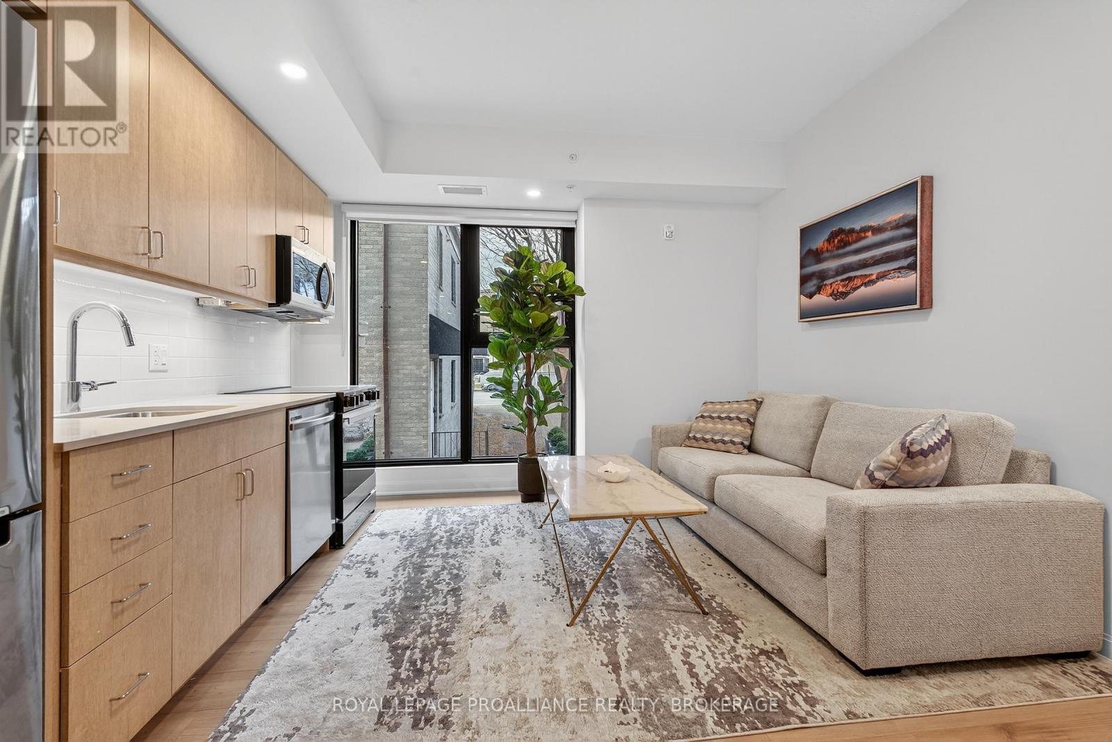 Welcome to this bright and inviting two bedroom condo in the heart of downtown Kingston. Large windows fill the space with natural light, creating a warm and comfortable atmosphere. Enjoy the convenience of the in-suite laundry along with utilities that include internet, gas and water. The building offers excellent amenities such as, a fitness centre, an outdoor patio with shared BBQ, and a meeting room for added flexibility. You'll love the prime location just steps from Queens University, hospitals, water front trails, shops and restaurants. A great opportunity to live or invest in one of Kingston's most convenient and connected neighbourhoods. (41668649)