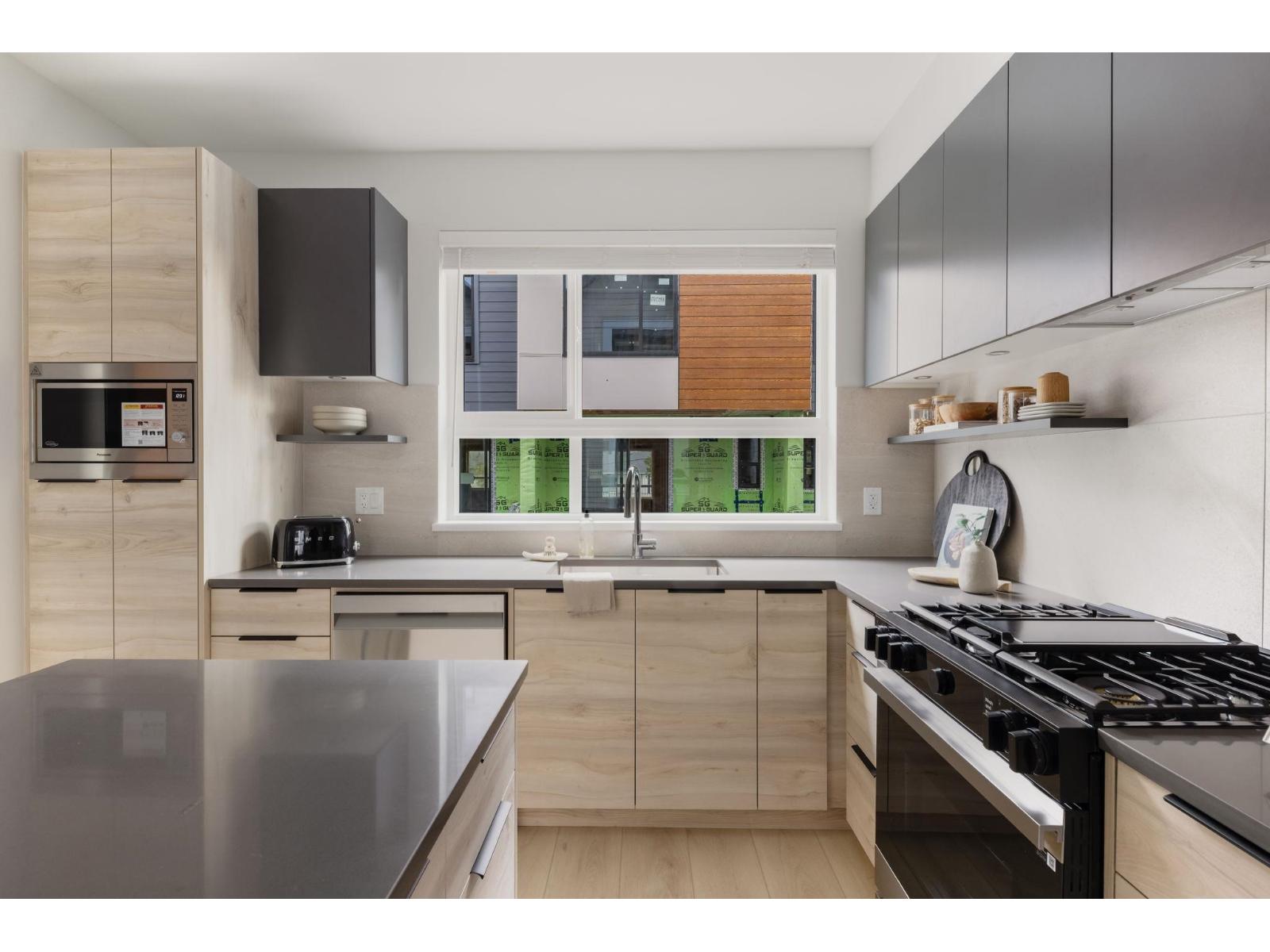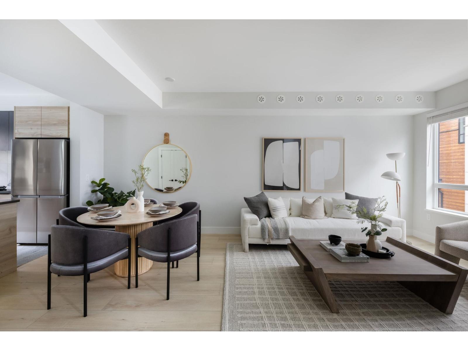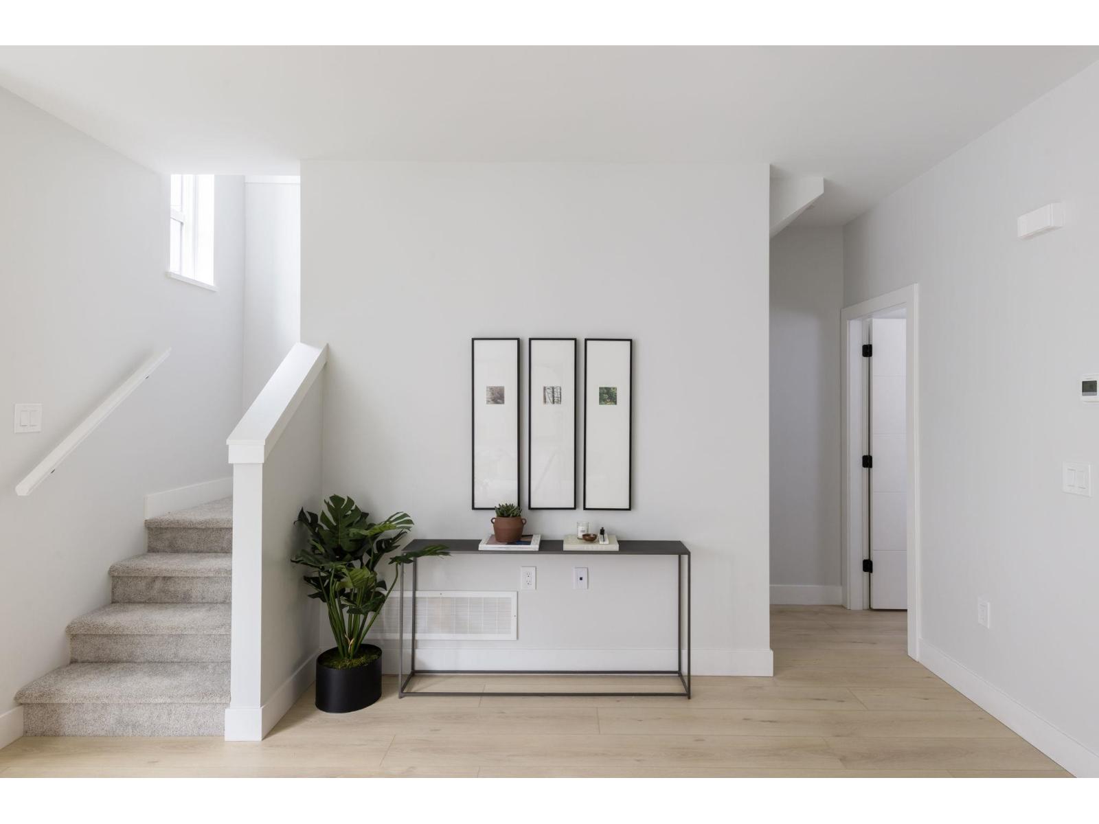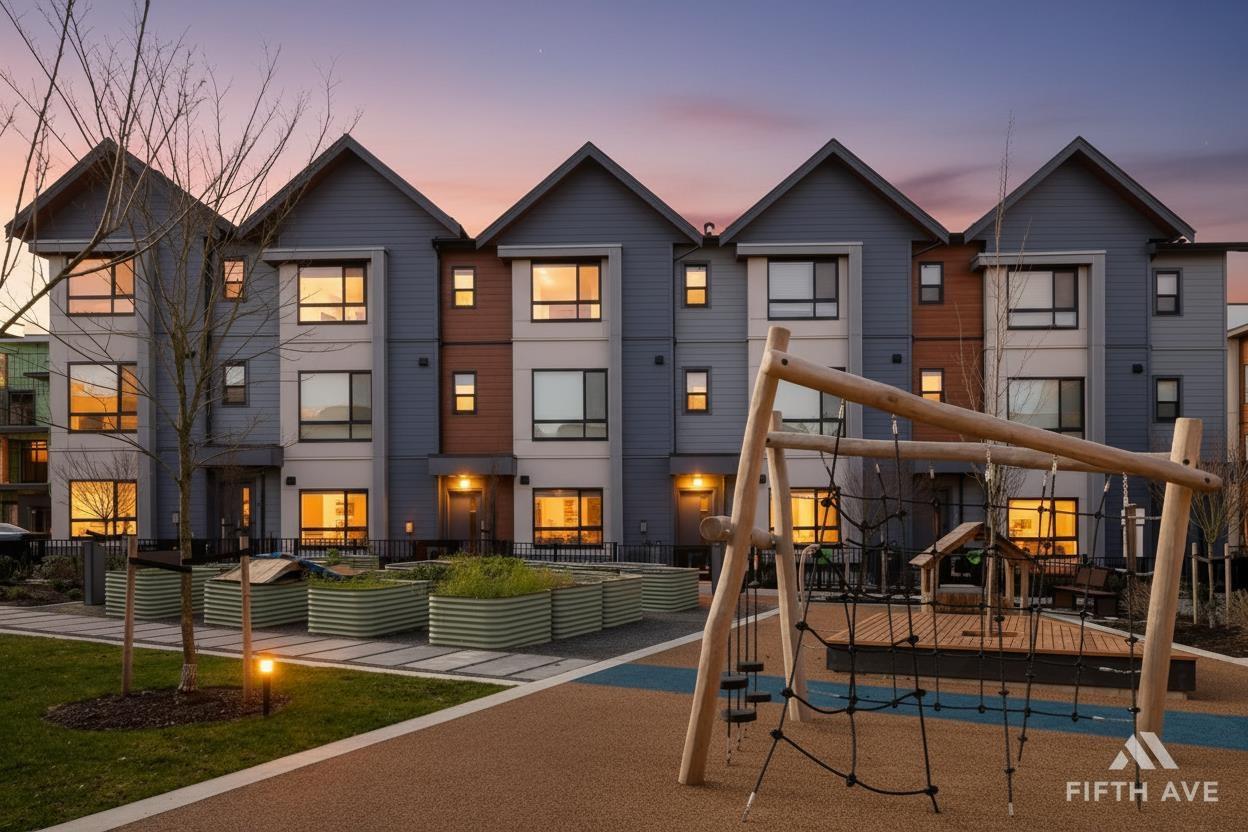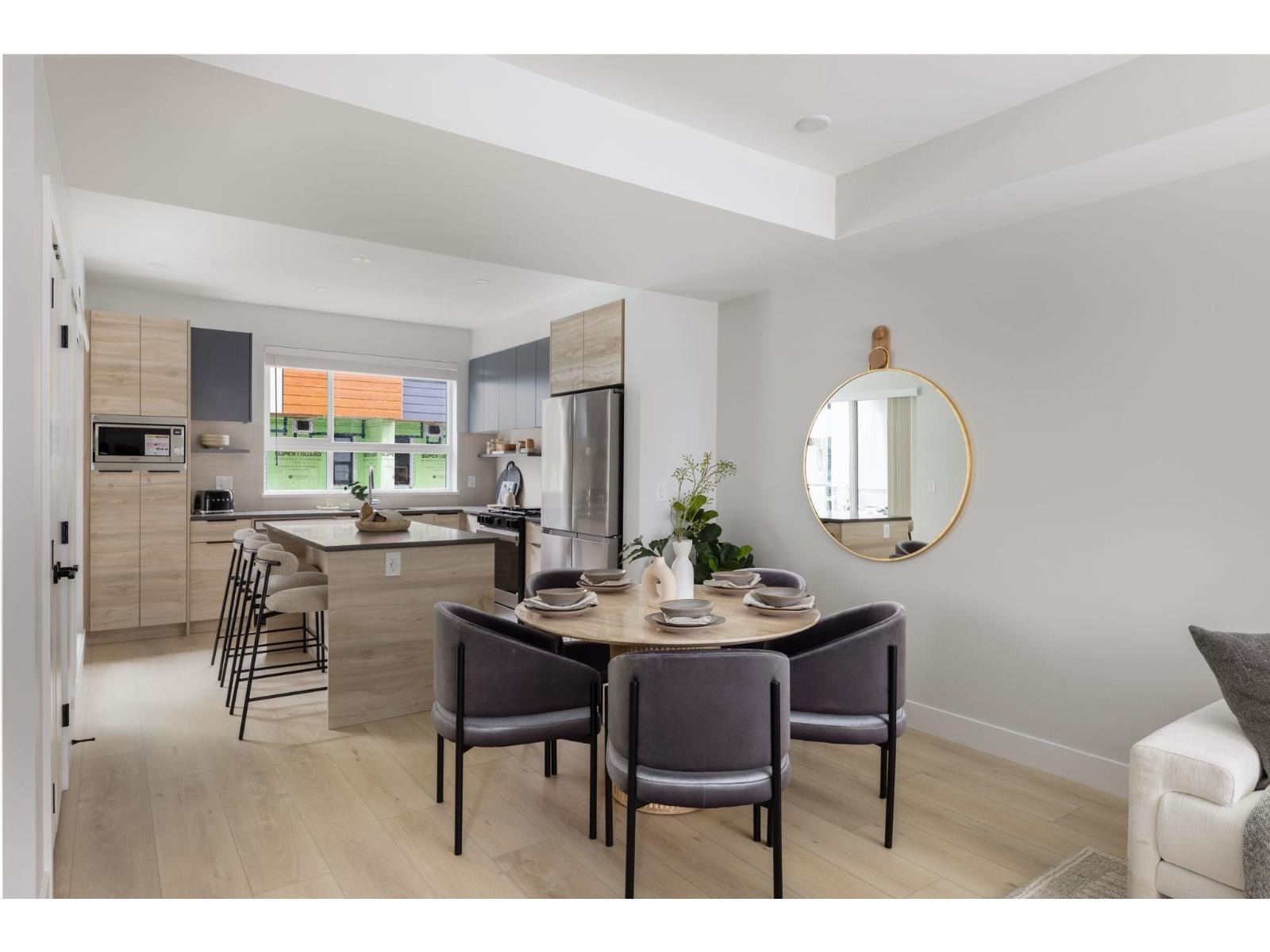 Welcome to Highstreet Village. This stunning townhome offers 3 bedrooms + flex space in a vibrant 12-acre community. Featuring 9' ceilings, durable vinyl plank flooring, and sleek roller shades, this home is designed for comfort and style. The modern kitchen boasts quartz countertops, two-tone cabinetry, and premium stainless steel appliances. A spacious primary suite includes a walk-in closet and spa-like ensuite with a frameless glass shower. Enjoy a private patio, attached garage, and top-tier amenities including a gym, rooftop terrace, and play area. Steps from Highstreet Shopping Centre, Hwy 1, and Abbotsford Airport. (32183010)