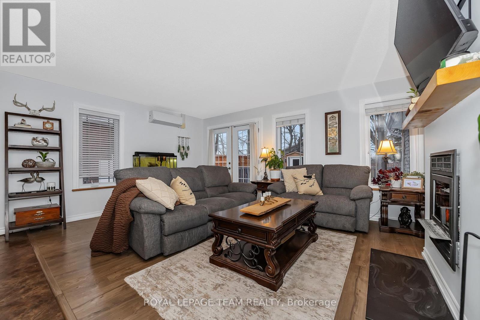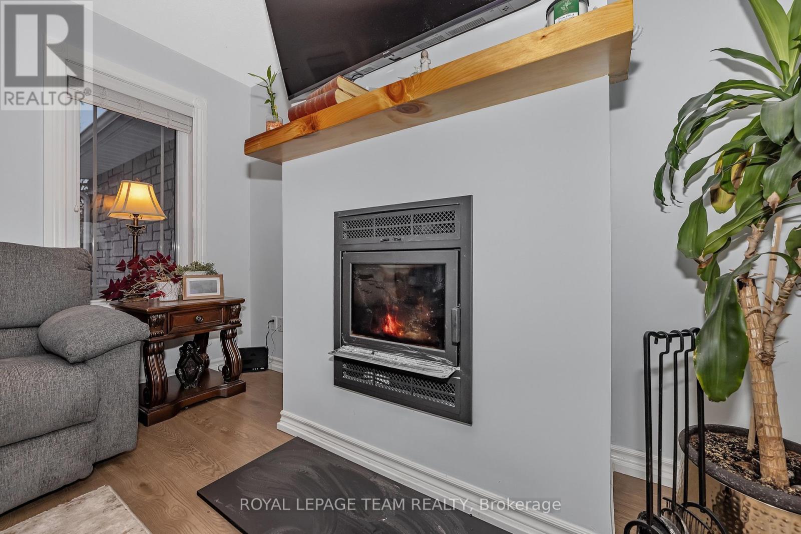 Beautiful Stone Bungalow with River Views and Exceptional Outdoor Living. This beautifully crafted two bedroom + space for an office or 3rd bedroom. Enjoy this 1,734 Sq Ft stone bungalow, built in 2007, exudes charm and curb appeal. The home features an oversized attached garage, a wide driveway. A welcoming covered verandah offers peaceful views of the river, while the partially fenced, private yard includes a large south-facing deck (18 x 17 ft)-perfect for relaxing or entertaining during the warmer months. Inside, enjoy one-level living with heated floors throughout and a bright, airy layout filled with natural light. The spacious foyer opens to an expansive front living room with waterviews that flows into the dining room creating a perfect setting for gatherings and entertaining, kitchen with a large centre island, double sink, and abundant cabinet and counter space. The kitchen overlooks the inviting family room, highlighted by a WETT-certified wood-burning fireplace installed in 2025- ideal for cozy family nights . The primary bedroom features both a walk-in closet and a second closet, along with a cheater ensuite to the updated full bathroom, which includes a new tub, tile, flooring, and solid wood cabinetry, an additional spacious bedroom complete the interior layout. Recent updates include new light fixtures throughout, added privacy fencing, and a newer heat pump for efficient heating and cooling. The partially fenced yard, storage shed, and beautifully landscaped grounds complete the package. Enjoy peaceful lake views and a fantastic location close to the beach, boat launch, restaurants, golf, and highway access. (41670412)