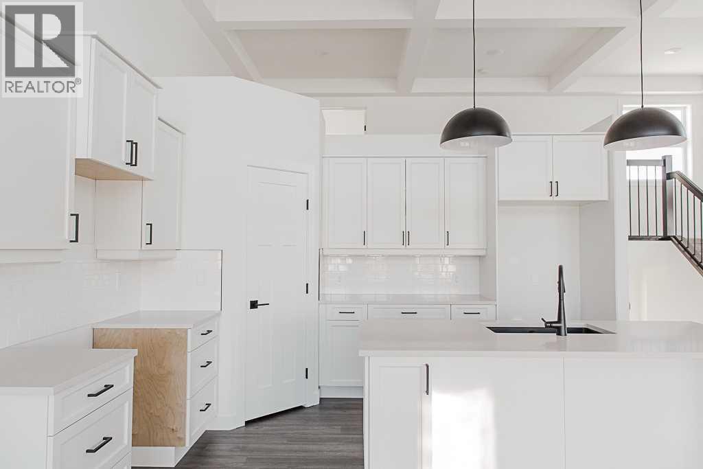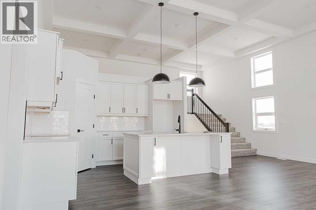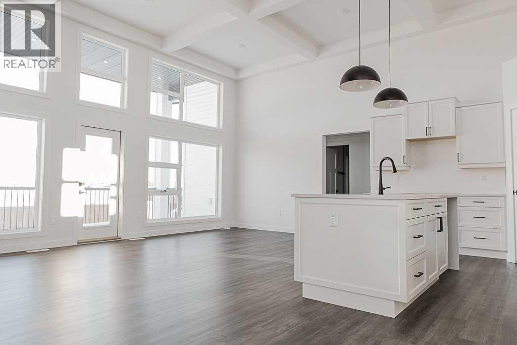 Introducing The Mackinley job #354, a highly sought-after modified bi-level built by Crosslink, now reimagined with a fresh, contemporary edge. This standout floor plan continues to impress with its signature architectural details and elevated finishes throughout. Step into the stunning great room, highlighted by an impressive 16 ft coffered ceiling, floor-to-ceiling windows, and a cozy gas fireplace. The open-concept kitchen is designed to impress, featuring upgraded cabinetry, quartz countertops, wood soft-close drawers, and undermount lighting, making it the perfect space for both everyday living and entertaining. On the main floor you can also find a full bathroom and 2 bedrooms. Upstairs, a spacious loft/office overlooks the main living area and leads to the luxurious primary suite. This retreat-style bedroom offers a spa-inspired five-piece ensuite with a soaker tub, dual vanities, a stand-up shower, and a massive walk-in closet. The 34' x 24' triple garage comes fully equipped, drywalled, plumbed for a heater, complete with hot/cold taps and a floor drain ready for all your storage and workspace needs. The basement is a blank canvas awaiting your vision or can be finished to the proposed layout for even more living space. This refreshed and always-popular floor plan is must-see. Contact your favorite agent to set up a private viewing! Photos are samples from a previous build and are subject to change. (31386682)