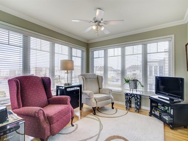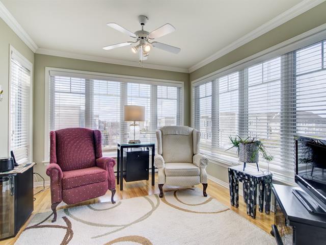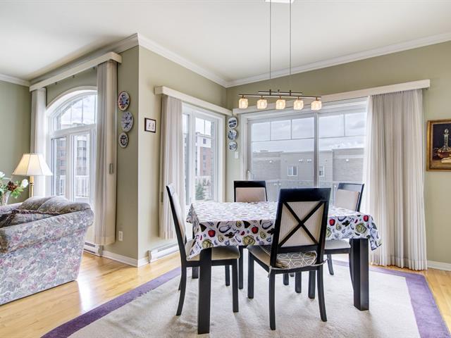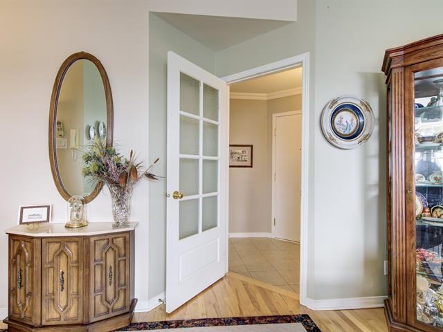 ** BRIGHT 4 1/2 CONDO WITH BOUDOIR ** Located on the 2nd and top floor of a building with an elevator. Unit with private garage, 9-foot ceilings, and wood floors. Airy, welcoming, and bright spaces. Spacious living room, dining room with patio door leading to a large balcony, appliances included in the kitchen, and comfortable boudoir with windows on three sides. Offers 2 good-sized bedrooms, bathroom with separate shower and bathtub. 1 outdoor parking space in addition to the garage. Prime location, within walking distance of Lake Vincent-D'Indy, the market square and its restaurants, and close to amenities and services. Details in addendum (56106952)