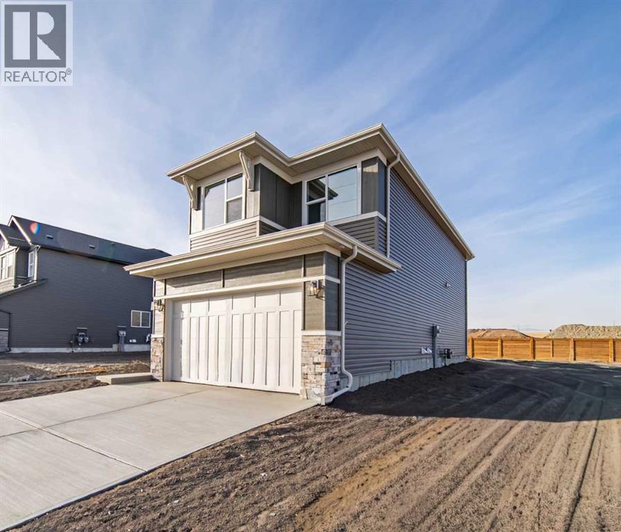 This stunning, brand-new home by award-winning Brookfield Residential is officially move-in ready and located in the highly sought-after community of Chinook Gate in Airdrie. Thoughtfully designed, this Rundle 24 model offers exceptional living with two spacious living areas, 3 bedrooms, 2.5 bathrooms, and an undeveloped basement with ample room for a future rec area, bedroom, and bathroom (with rough-ins + side entrance already in place). At the heart of the home sits a chef-inspired kitchen featuring a built-in oven range hood and microwave, and a slide-in gas range. A generous walkthrough pantry seamlessly connects the kitchen to the mudroom and the double attached garage, enhancing everyday convenience. Open to both the dining area and main living space, this kitchen is designed for effortless flow -ideal for family living and entertaining alike. A wall of west-facing windows along the back of the home fills the main floor with natural light, while the dining area’s patio doors provide direct access to the backyard. A cozy electric fireplace adds warmth and comfort to the living room, creating the perfect atmosphere for winter evenings. Beautiful natural wood railings with iron spindles lead to the upper level, where a central bonus room separates the luxurious primary suite from the secondary bedrooms, ensuring both privacy and functionality. The spacious primary bedroom boasts a spa-inspired 5-piece ensuite complete with dual sinks, a soaker tub, a walk-in shower, and an impressive walk-in closet. Two additional well-sized bedrooms, a full bathroom, a large linen closet, and a dedicated laundry room complete the upper floor. The basement, offering nearly 800 sq. ft., is a blank canvas ready for your personal vision - whether that’s a home theatre, gym, additional bedrooms, or all of the above and the bathroom rough-ins are already in place. Situated on a bright and sunny lot spanning nearly 4,000 ft2 in size with ideal west backyard exposure, this is the perfe ct home both inside and out! With both Builder Warranty and Alberta New Home Warranty, you can purchase with confidence. Fully finished, beautifully designed, and move-in ready, this exceptional home in Chinook Gate is perfect for a growing family looking for comfort, style, and a vibrant community. (31387473)