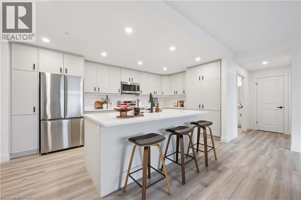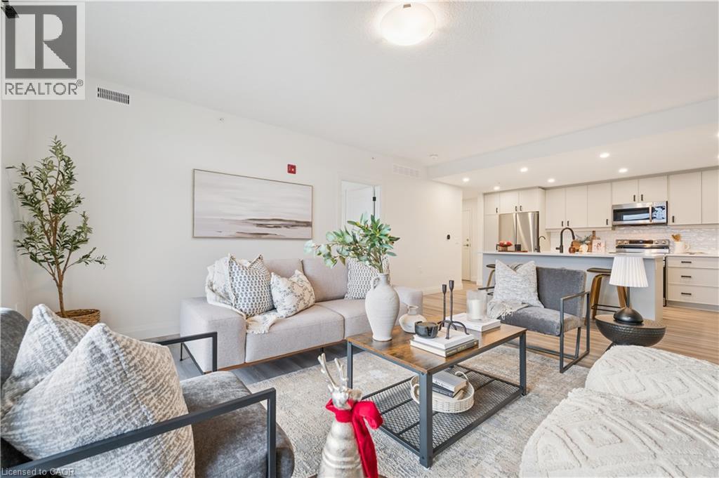 Arguably one of the nicest condo units within 99B Farley Rd., for it's top floor location with elevator access, privacy, south-west exposure, spacious floor plan and storage offerings. This 1275 square foot condo offers 2 generous bedrooms, 2 full baths and an underground parking spot with exclusive locker space. Quality built in '2024 by Keating, this condo has been designed with high quality finishes, ample parking, storage and an eco-friendly Geothermal climate control system for ease of utility costs. It's functional open-concept floor plan offers a very generous kitchen with centre island and breakfast bar, elegant granite countertops and waterfall off island, complete with stainless steel appliances. A seamless flow to the large bright living room, with built-in fireplace and beam mantle, leads out sliding doors to the large balcony overlooking the rear of building (opposite the parking). This sought after layout offers two generous bedrooms, primary bedroom with it's own full ensuite bath and walk-in closet. Second bedroom enjoys it's own use of another full bathroom. In-suite laundry room offers additional storage within unit. Various tasteful updates added throughout this unit, make it a wonderful home for luxury and comfort. The underground parking is right next to elevator and alongside has exclusive large storage unit. Located close to the new Groves Hospital and medical clinics, new public school, parks and walking trails and just a short drive to downtown Fergus and Elora for all they have to offer. You will want to make this a 'must see' and look forward to this holiday season in your new home. (69906381)