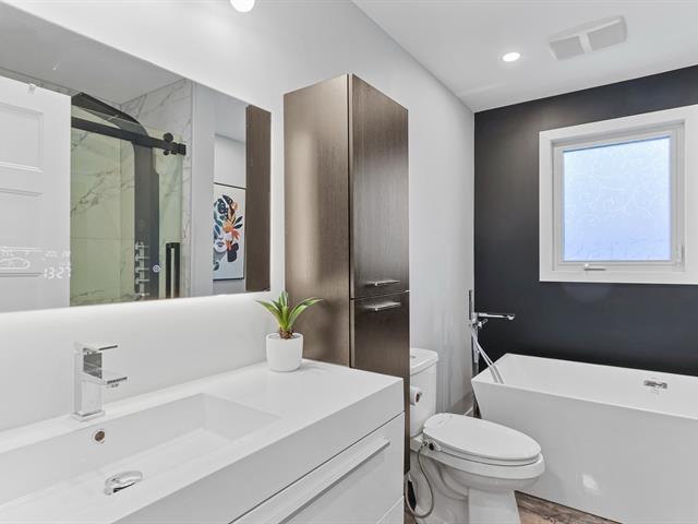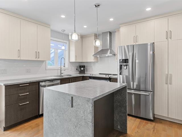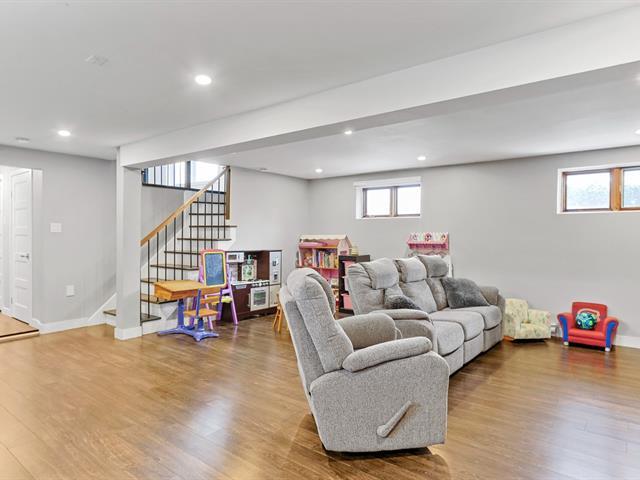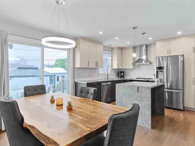 Turnkey, move-in ready home with garage in Ville Mercier. Includes 3 bedrooms on the main floor, with the possibility of adding 2 more in the basement. Two renovated bathrooms and a kitchen with a central island redone in 2021. Large storage room in the basement. Fenced backyard with shed. Large garage (13.2 ft x 34.9 ft) with direct access to the basement from inside the garage!!! Parking for up to 5 cars! Flexible occupancy. Perfect for you and your family! Come visit you'll be charmed! 36 photos on Centris. (43835559)