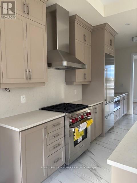 Ready for Showings! Amazing Opportunity. Angus Glen South Village, Brand New Modern Home, never lived in 2820 sq. ft. 4 Bedroom 2 Full bathrooms, 2 Powder rooms. 9' 10' & 9' smooth ceilings, hardwood & tile flooring. Hardwood stairs throughout with Iron pickets. Fabulous 'Loft' style triple pane windows. Kitchen has quartz counters and backsplash, high end Wolf/Sub-Zero/Bosch appliances, Extra bar sink, coffee bar, floor to ceiling pantry, loads of cupboards & counter space. Large family room with gas fireplace & walk out to terrace. Combined living/dining rooms, Balcony from primary bedroom. Primary bathroom has stand alone tub, frameless glass shower, double sinks. Open stair to basement with finished landing. Basement unfinished, has rough in for future bathroom. 2 car garage, 2 car driveway. BBQ line on terrace. Close to walking trails, green space and parks. Short drive to Hwy. 404. Be part of this amazing new community! (41678106)