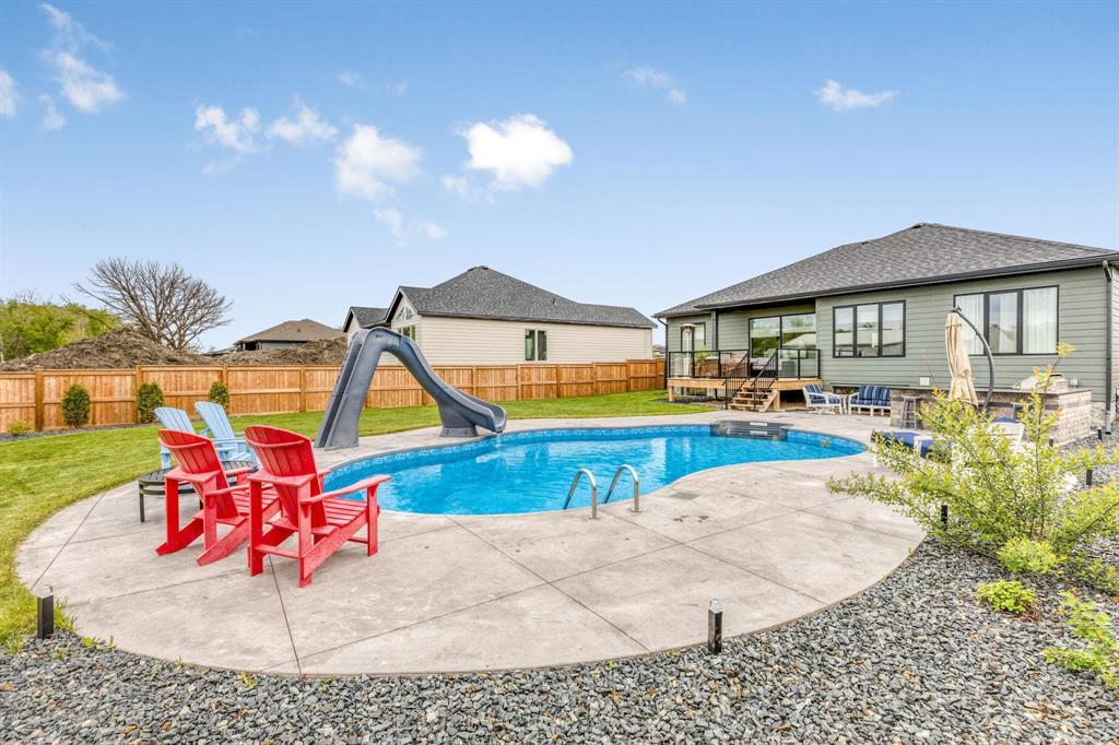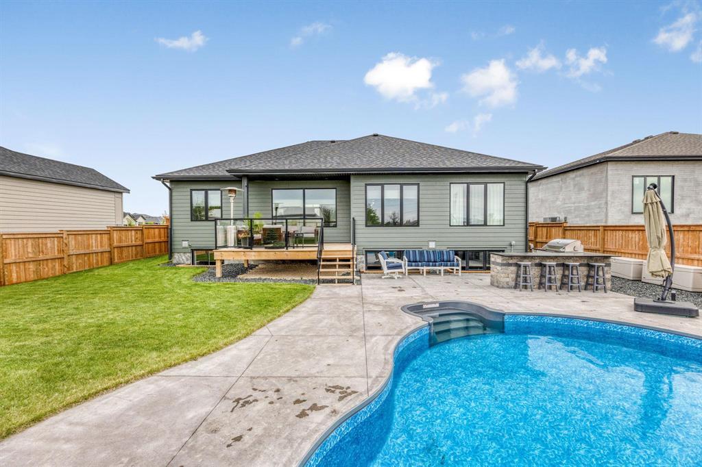 3P//East St Paul/SS now, Offers as Rec'dA former showhome, this luxurious bungalow offers a great room floor plan with 10FT ceiling and linear FP. The DR can comfortably sit 8-10 with direct access to the backyard. You'll love the kitchen with ceiling-height cabinets, big island, quartz counters and professional grade appliances. The space flows naturally and is accented by custom lighting. Split bedroom floor plan with the primary bedroom and deluxe ensuite on one side, and 2 bedrooms and main bath on the other. The primary bed can fit a California King and is complemented by an EXQUISITE ensuite bath with custom tile, double vanity, heated tile flr, separate water closet. Main floor laundry is spacious and practical. Expansive basement maximizes development potential for 2 beds, bath and recroom. High ceilings, steel beam, engineered floor joists, piles, 200amps. Fully landscaped backyard with mature trees, heated salt water pool (2023), outdoor kitchen, stamped concrete and fully fenced; excellent for kids and pets. All on a 70ftx207ft lot in a desirable and aesthetic neighbourhood with MUNICIPAL WATER AND SEWER. Attached garage with floor drain. Home Warranty 2028, close to all amenities. Measurements/- (231648010)