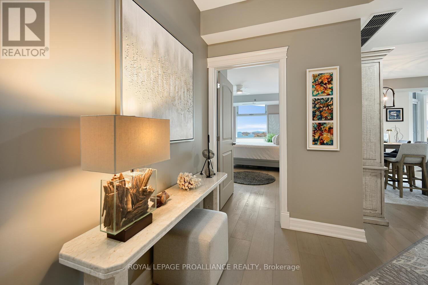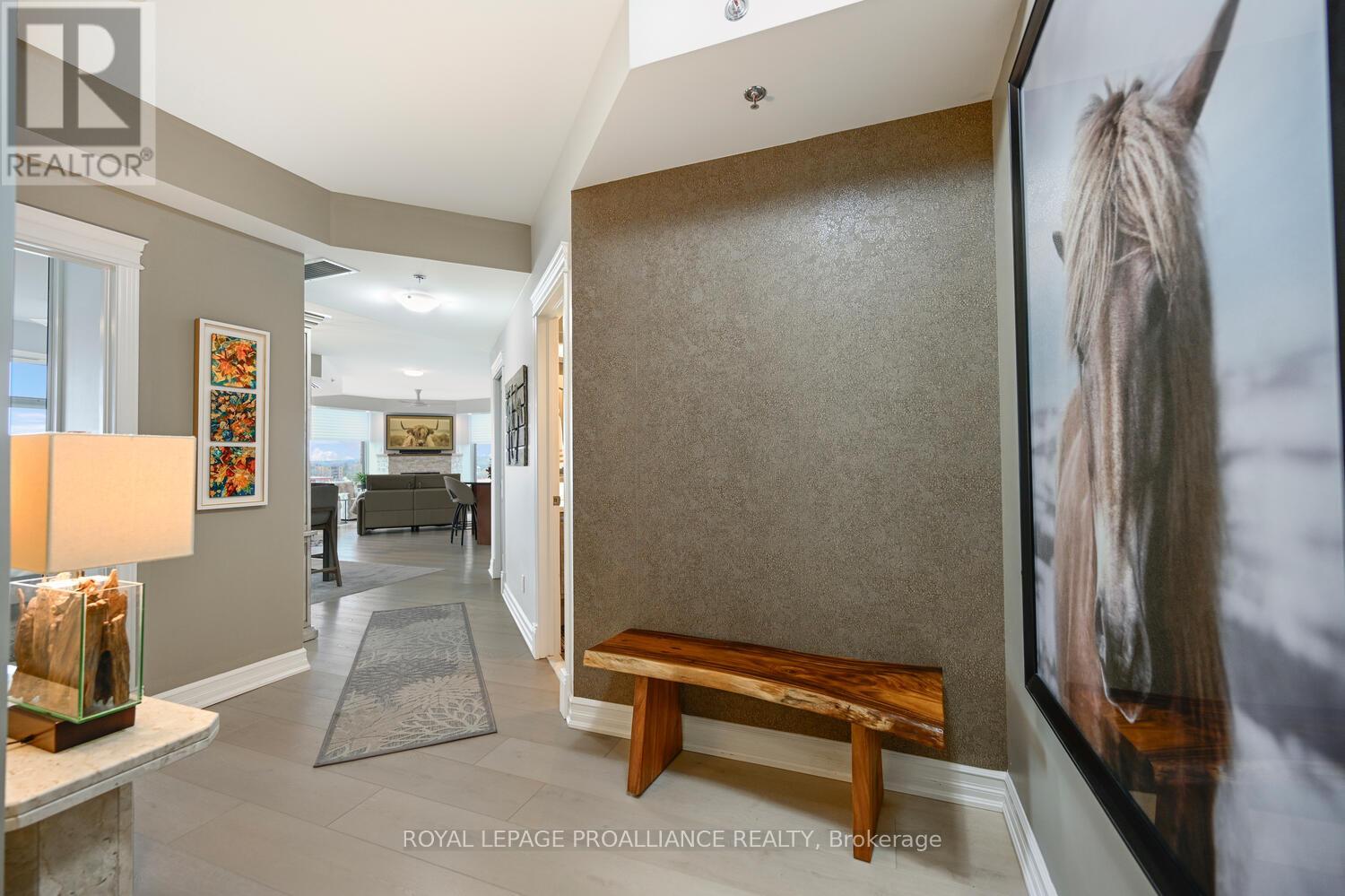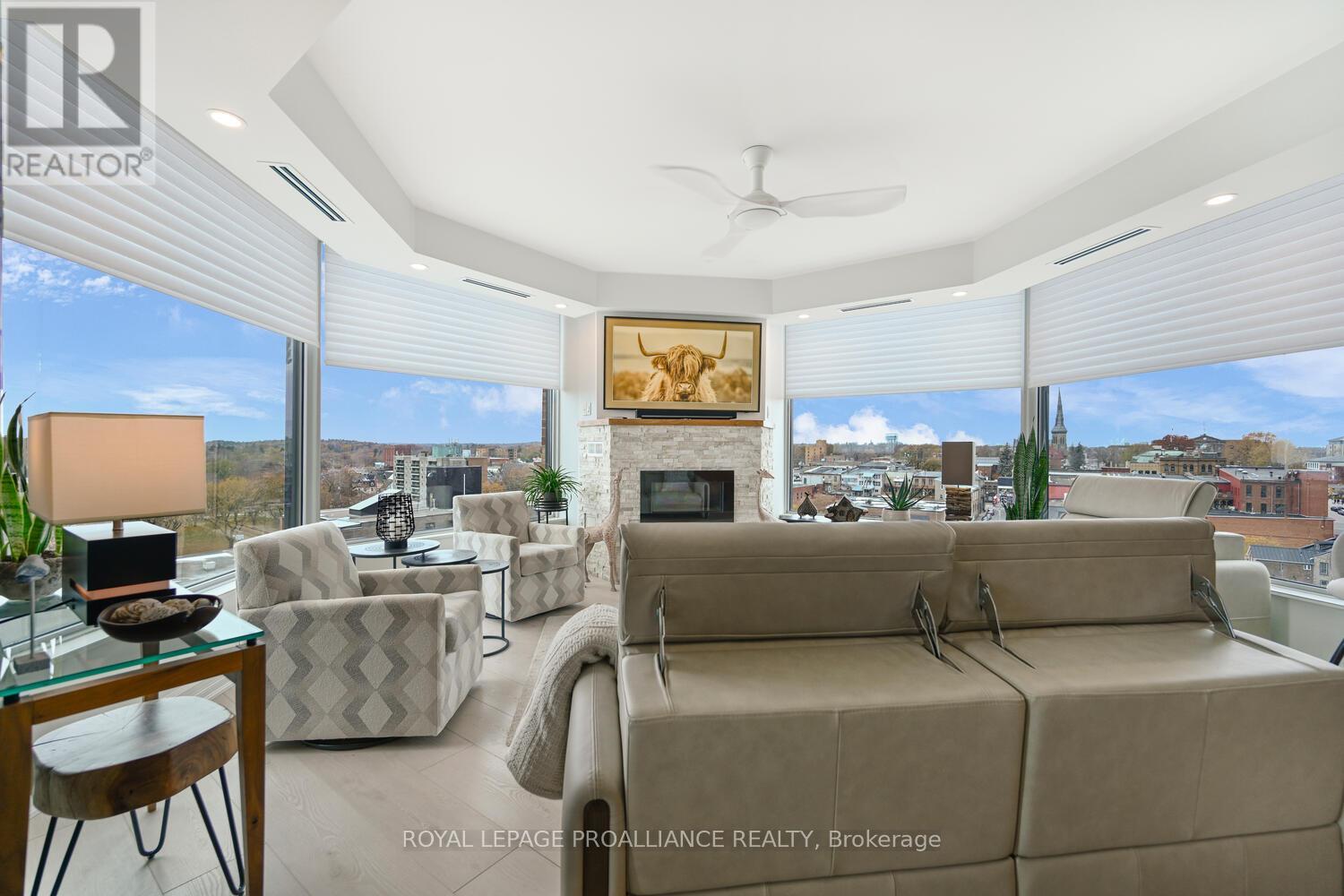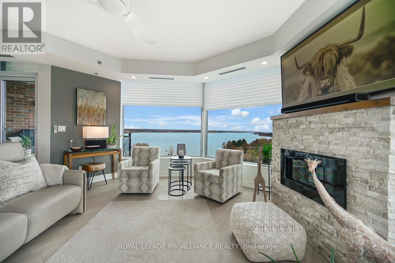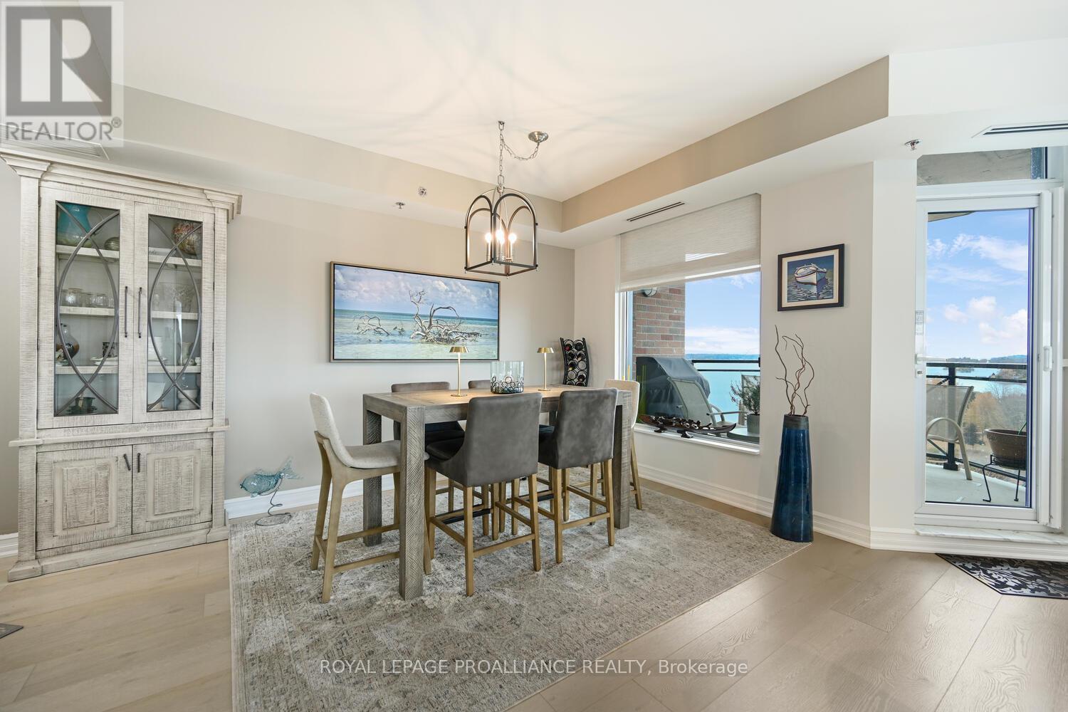The stunning panoramic views from all windows in this tastefully appointed condo allow a pleasing outlook of the 1000 Islands and parkland to the west and cityscapes and the many church spires to the north. The current owner replaced all flooring and redecorated throughout when purchased from the original owner. Enjoy tasteful luxury vinyl plank throughout and cushion tile flooring in the baths. This "designer look" condo is freshly painted throughout in neutral colours. You will never tire of summer days and evenings on your private 105 sq ft balcony watching ocean going ships, lakers, private yachts and endless riverfront activity. Meet fellow residents or friends at the in building restaurant or cafe. Enjoy a game of pool in the party room, keep fit exercising in the work out room or swimming in the heated indoor pool. An extensive waterfront deck expands across the perimeter of the building providing multiple sitting areas, outdoor shuffle board, wonderful for socializing. When you live at the "Tall Ships" you are not just buying a beautiful, contemporary home but also a great, carefree lifestyle. Book your showing soon. Seller can accommodate a quick closing. (41680280)
