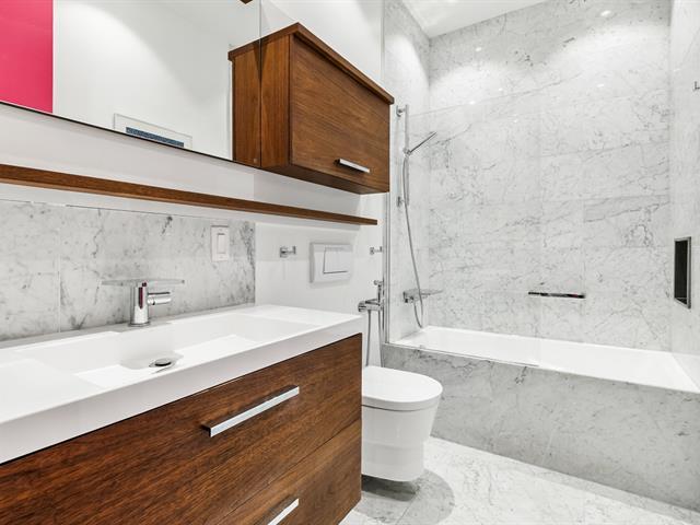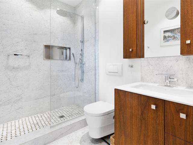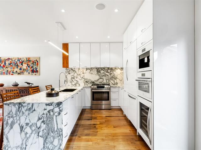 Modern property in the heart of Saint-Henri, steps from the Lachine Canal, metro, cafés, restaurants and local boutiques. Built in 2016 with a private townhouse-style entrance, 1,356 sq. ft., 3 bedrooms, 2 full bathrooms + powder room. Double underground garage with bike space. High ceilings, large windows and two terraces, including one facing the garden. High-end materials, superior soundproofing and energy efficiency, central system and air exchanger. (38765321)