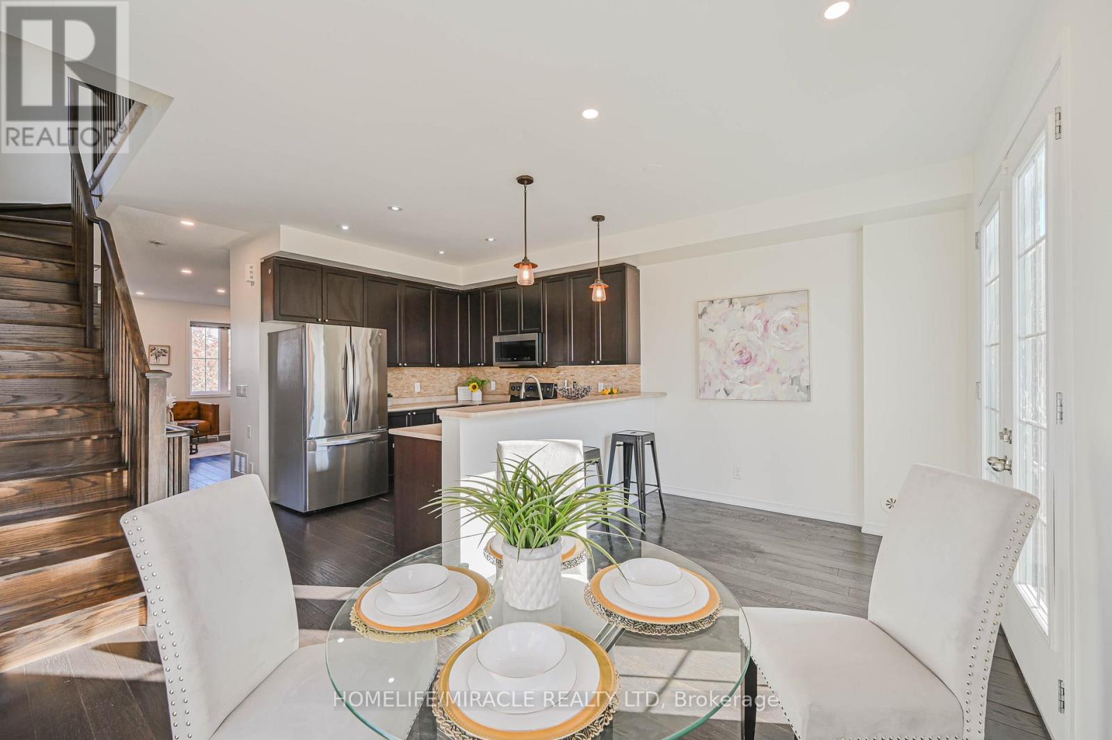 Spacious and bright executive 3-bedroom- 4 washroom end-unit townhouse that feels just like a semi! Located in the highly sought-after Terracotta Village community, close to 407, Schools, and all major roads. This open and sun-filled home is perfect for growing families, first-time buyers, or investors. Features include hardwood flooring on the main level, convenient upper-level laundry, and a finished basement with a walk-out to the backyard and a full bathroom. : Above 1740 sq ft in total including, main, 2nd and 3rd floor. see attached floor plan for reference. (41683232)