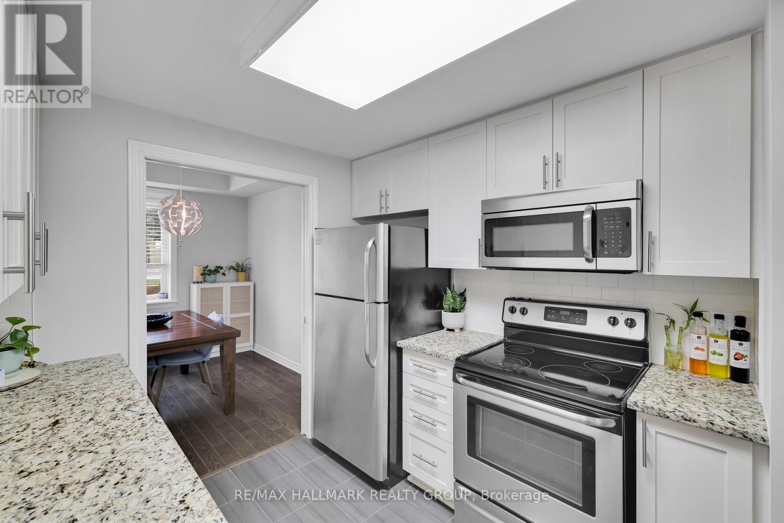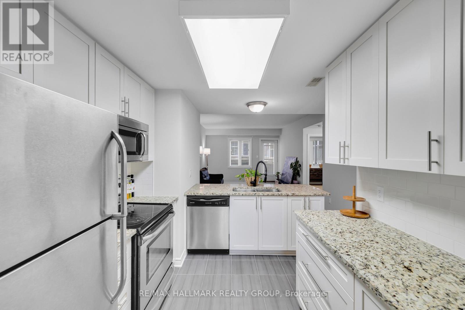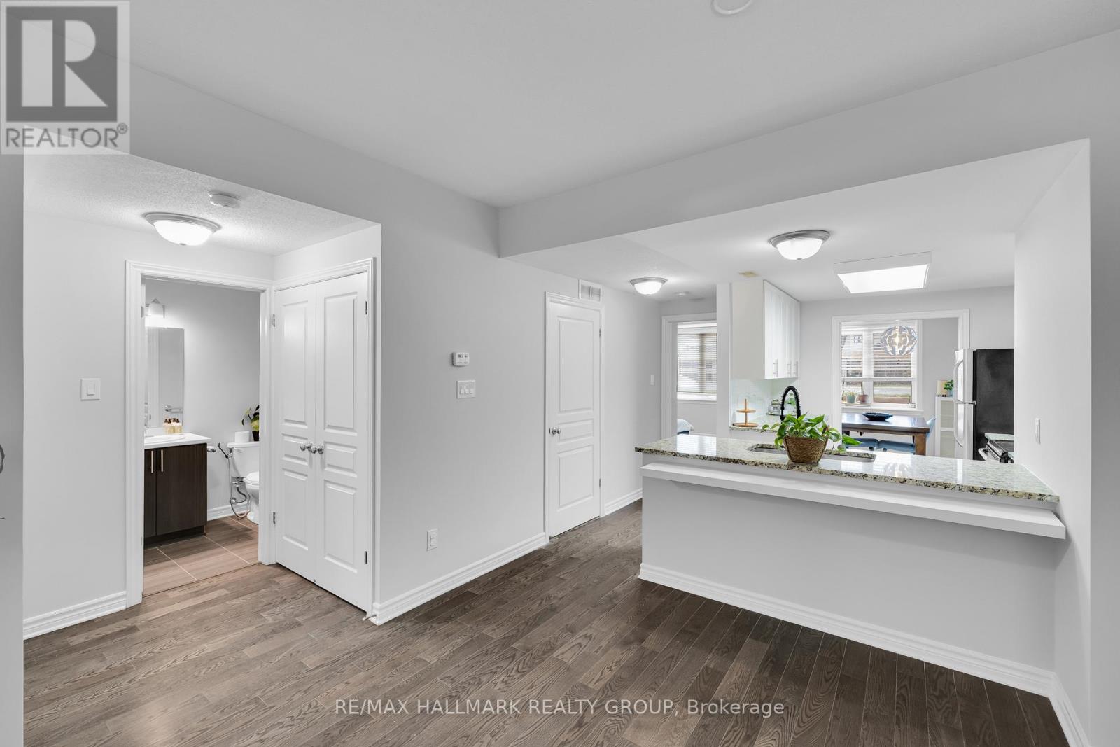 Bright and spacious, this 2-bedroom, 2-bath walk-out condo with 9' ceilings is located in the popular Riverside South community. Offering roughly 1,200 sq. ft. of living space by Richcraft, it features hardwood in the living and dining rooms and ceramic tile in the kitchen, entry, and bathrooms. The living room opens onto a private terrace-providing a second entrance to the unit - while the kitchen includes a breakfast bar and floor-to-ceiling cabinets for plenty of storage. The two bedrooms are located on opposite sides of the condo, giving each added privacy. The primary bedroom is generously sized and includes a walk-in closet and its own ensuite. The second bedroom sits next to a full main bath, making it ideal for guests, family, or a home office. As a ground-floor unit, you also get the convenience of a separate private entrance through the terrace. Close to walking trails, public transit, schools, shops, parks, and the future LRT, this home is a great option for first-time buyers and investors alike. One parking space is included (Spot #14A). (41683943)