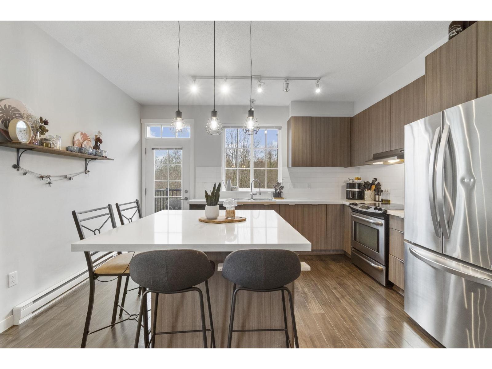 CORNER UNIT with OVERSIZED YARD! Bright and spacious 2-bed, 2-bath townhome at Brighton with tons of NATURAL LIGHT. Main floor features soaring 9' ceilings, a huge island kitchen with stone countertops, stainless steel appliances, and an open-concept living and dining area perfect for entertaining. Upstairs offers two generous bedrooms, including a master suite with walk-in shower and his-and-her sinks. Enjoy a 2-car garage, visitor parking right beside home, and a LARGE private BACKYARD backing the Discovery Trail with serene greenspace views. Access 8,500 SQFT of Club West amenities, including pool & hot tub, gym, hockey room, fireside lounge, pool table and media room, theatre, dog wash station. Minutes to highway, Mall shops, and restaurants. Open House Sunday, December 14 2PM - 4PM (32191498)