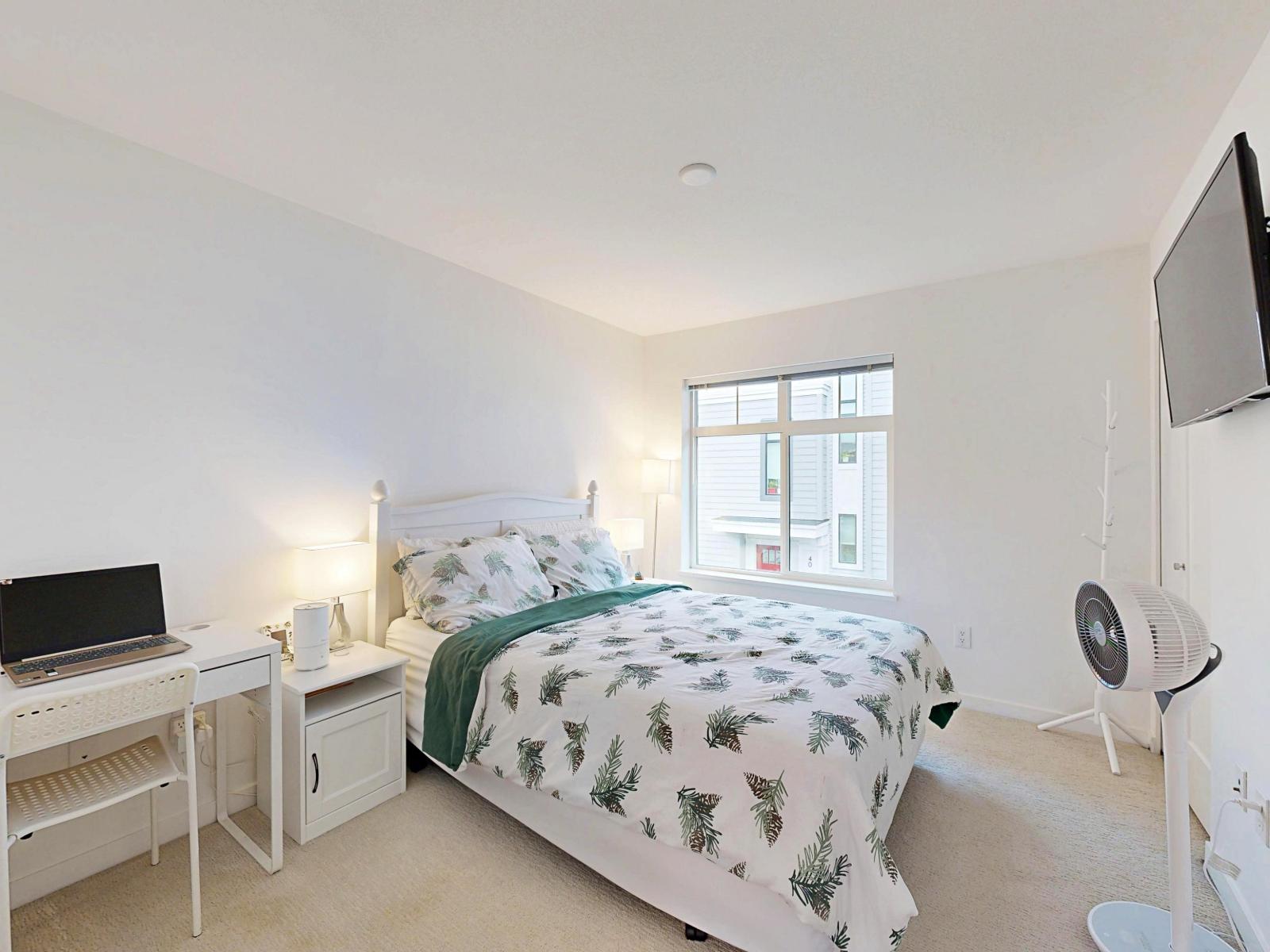 Welcome to Wood & Water by Anthem, a sought-after family-friendly community located across fr Guildford Golf Course.This bright & spacious 2-bed + den,3-bath thome offers an open-concept layout perfect for modern living. The main flr features a large kitchen w/ sleek cabinetry,quartz countertops, & ss appliances. Upstairs, you'll find 2 generous bdrms, each w/ access to its own bathroom for ultimate convenience & privacy. The lower level includes a versatile den,perfect for a home office, guest space, or study area. Enjoy the comfort of front-load laundry and a thoughtfully designed floor plan that maximizes space & natural light.Located close to top-rated schools, bus routes, & upcoming SkyTrain extension. (32189669)