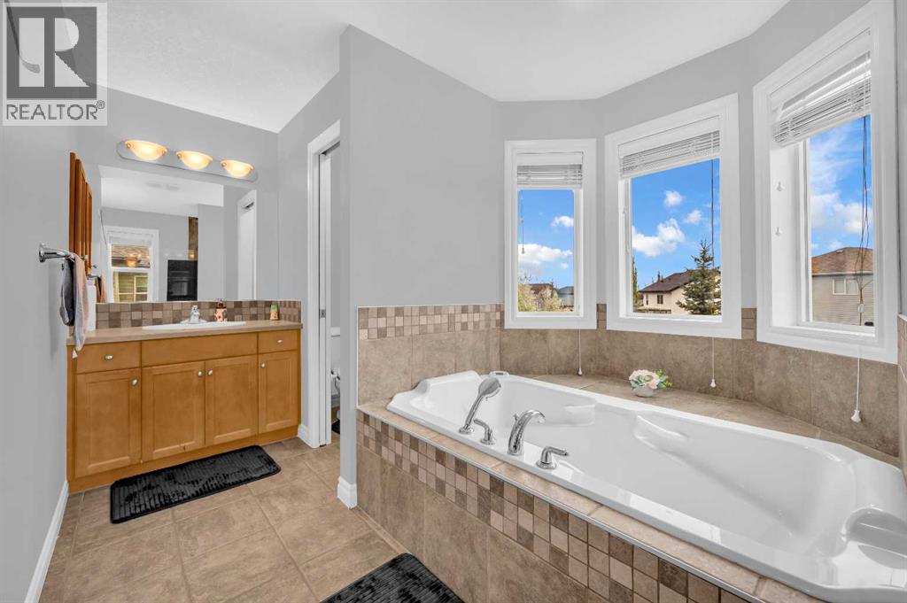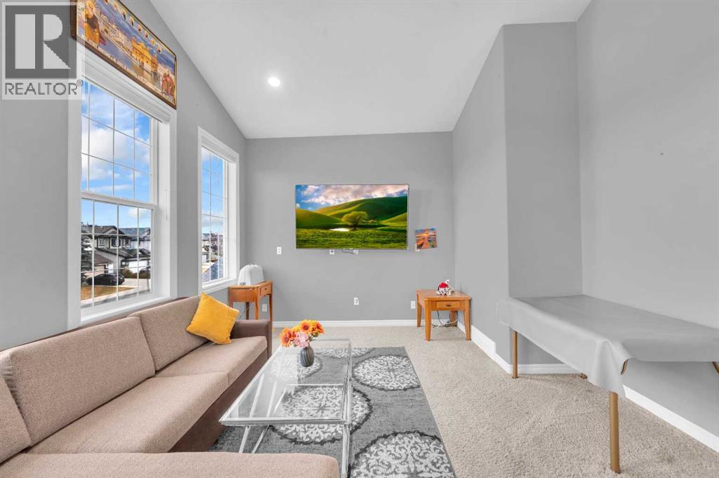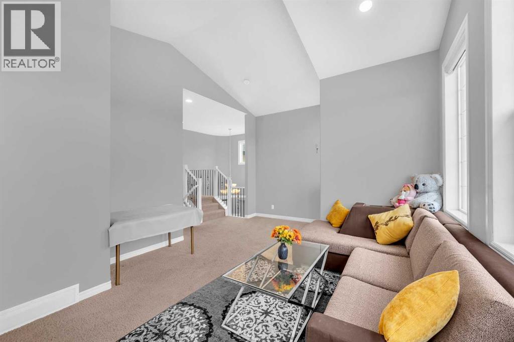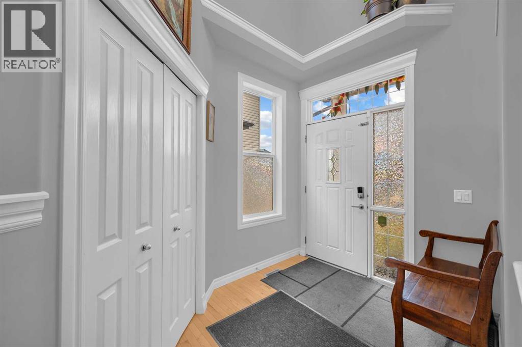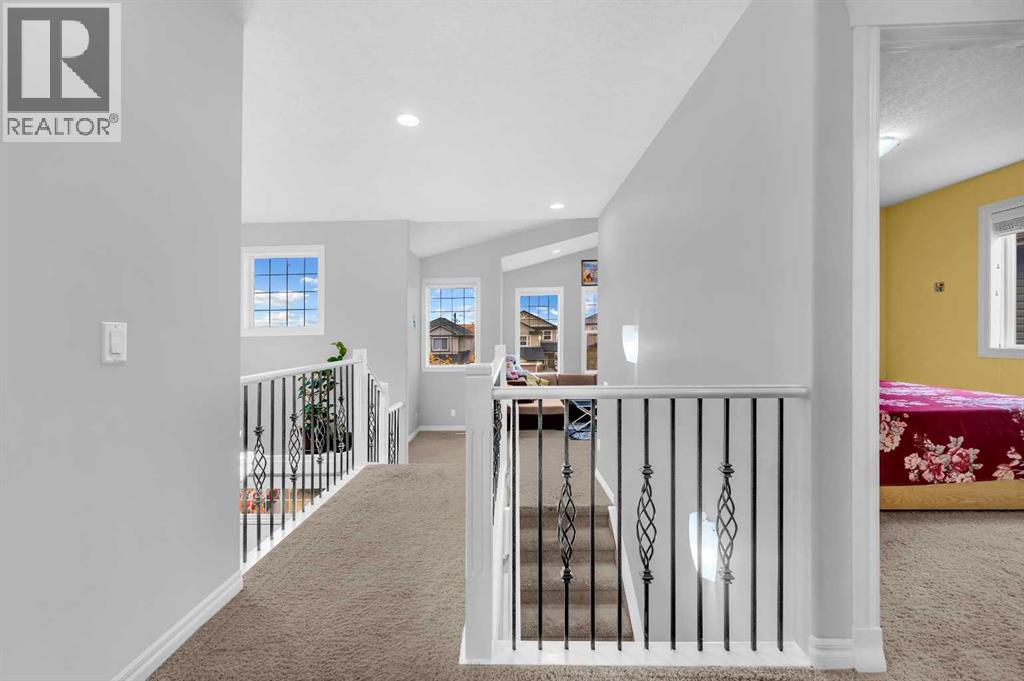 . Beautifully upgraded two-storey front garage home in the heart of Coventry Hills, offering the perfect blend of style, comfort, and practicality. The main floor features 9-foot knockdown ceilings, rich hardwood flooring, and a welcoming entry with a front closet and decorative niche. The open-concept layout flows seamlessly through a bright living area with two large windows, a cozy natural gas fireplace in the dining area with built-in shelving, and a stylish kitchen complete with maple cabinetry, granite countertops, stainless steel appliances including a double-door fridge with water line, a pantry, and a sunny south-facing window. A convenient half-bath and a separate laundry room with upgraded washer and dryer complete the main level. Upstairs, the elegant railing with metal spindles leads to a spacious bonus room with vaulted ceilings, pot lights, and large windows—an ideal space for family relaxation. The primary bedroom offers a generous layout with a walk-in closet and a luxurious ensuite featuring double sinks, a jetted tub, a standing shower, tile flooring, and pot lighting. Two additional bedrooms upstairs are bright and roomy, complemented by a full main bathroom. The finished basement expands the living space with a large recreation area and an extra bedroom—perfect for guests, teens, or a home office. The large south-facing backyard features a maintenance-free deck with glass railing and convenient back-alley access, making it perfect for RV parking without sacrificing yard space. Ideally located within walking distance to several elementary schools, a public middle school, parks, and green spaces—plus just minutes to Notre Dame High School, Vivo Rec Centre, Country Hills Town Centre, and Coventry Hills Centre for all your shopping and dining needs. Enjoy easy access to Stoney Trail, public transportation, and the airport—making this upgraded, move-in-ready home the perfect combination of comfort, convenience, and community living. (31395001)