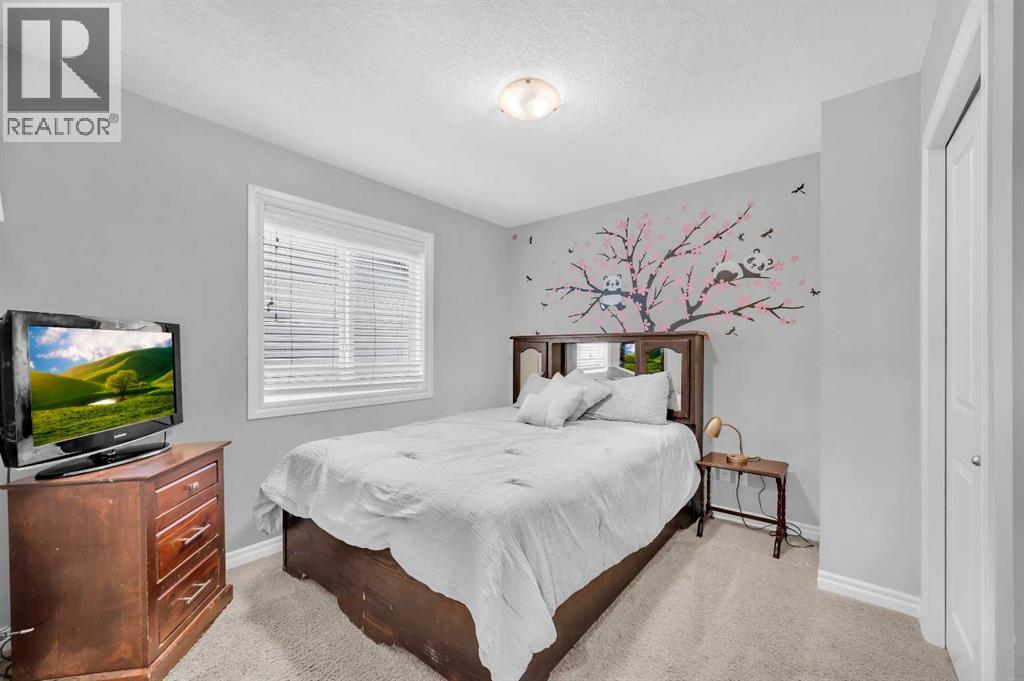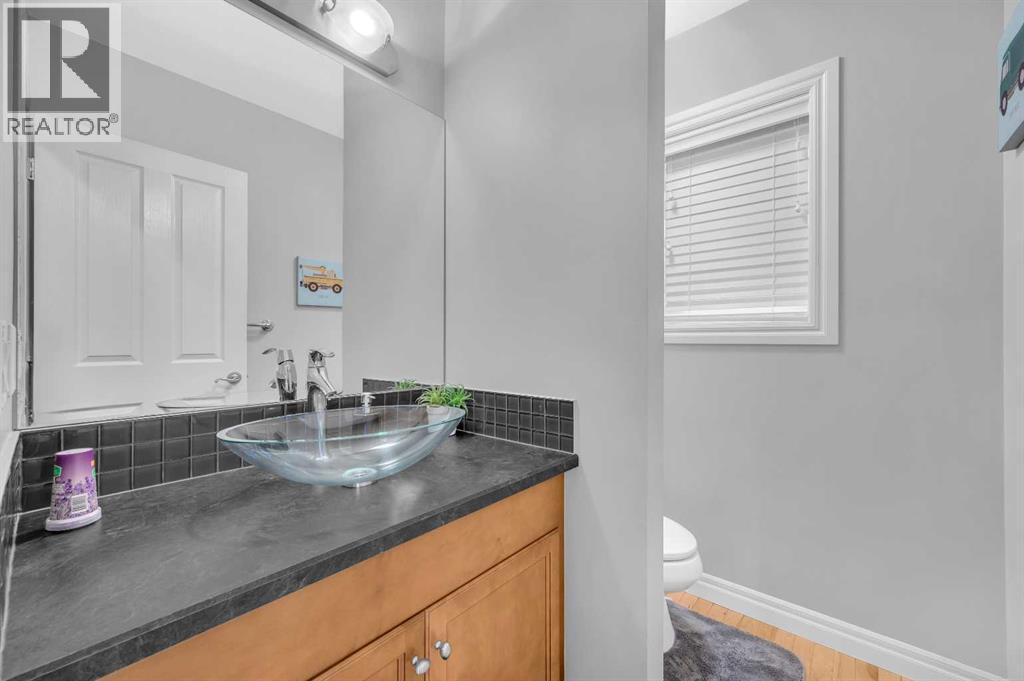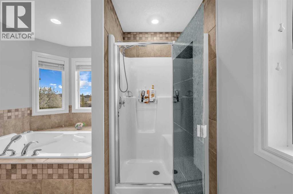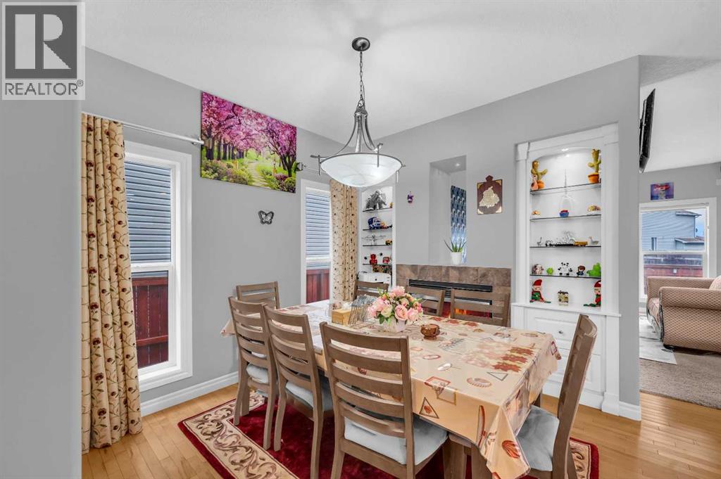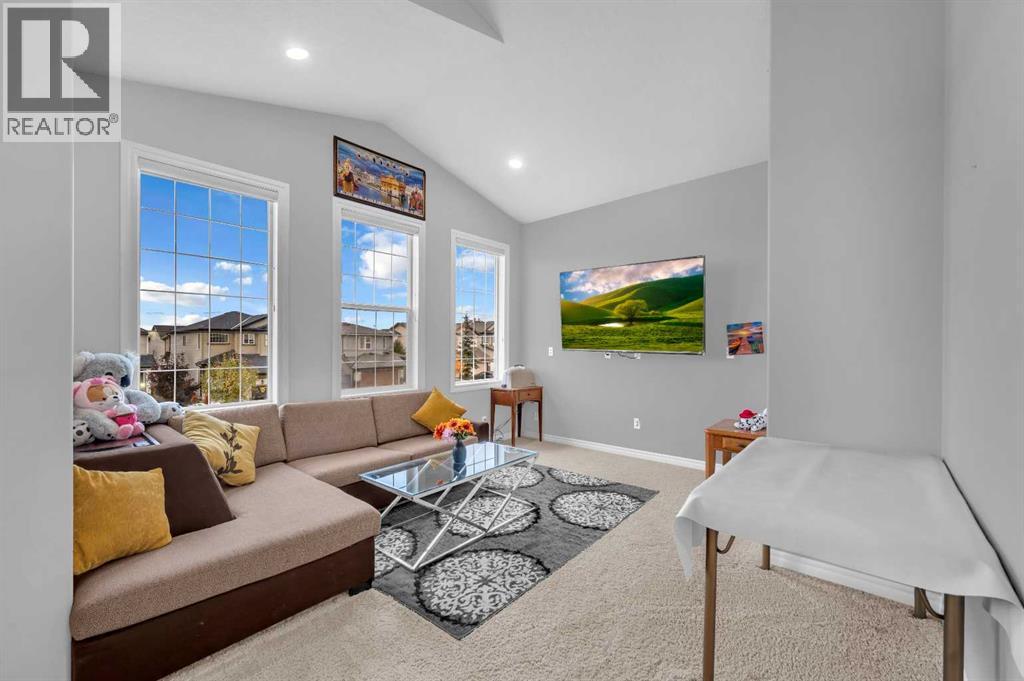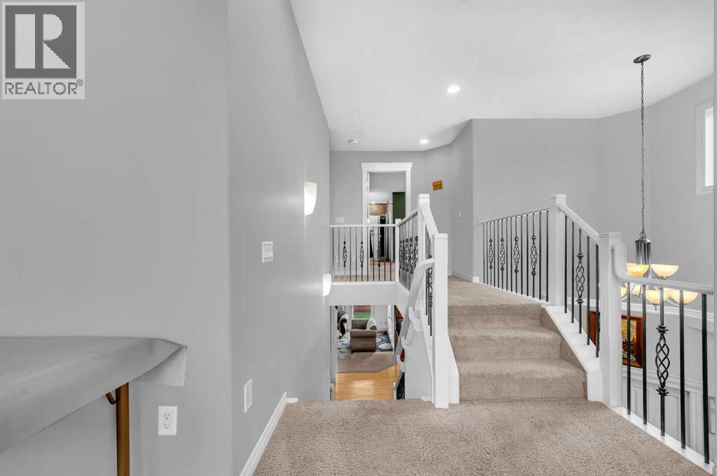 . Beautifully upgraded two-storey front garage home in the heart of Coventry Hills, offering the perfect blend of style, comfort, and practicality. The main floor features 9-foot knockdown ceilings, rich hardwood flooring, and a welcoming entry with a front closet and decorative niche. The open-concept layout flows seamlessly through a bright living area with two large windows, a cozy natural gas fireplace in the dining area with built-in shelving, and a stylish kitchen complete with maple cabinetry, granite countertops, stainless steel appliances including a double-door fridge with water line, a pantry, and a sunny south-facing window. A convenient half-bath and a separate laundry room with upgraded washer and dryer complete the main level. Upstairs, the elegant railing with metal spindles leads to a spacious bonus room with vaulted ceilings, pot lights, and large windows—an ideal space for family relaxation. The primary bedroom offers a generous layout with a walk-in closet and a luxurious ensuite featuring double sinks, a jetted tub, a standing shower, tile flooring, and pot lighting. Two additional bedrooms upstairs are bright and roomy, complemented by a full main bathroom. The finished basement expands the living space with a large recreation area and an extra bedroom—perfect for guests, teens, or a home office. The large south-facing backyard features a maintenance-free deck with glass railing and convenient back-alley access, making it perfect for RV parking without sacrificing yard space. Ideally located within walking distance to several elementary schools, a public middle school, parks, and green spaces—plus just minutes to Notre Dame High School, Vivo Rec Centre, Country Hills Town Centre, and Coventry Hills Centre for all your shopping and dining needs. Enjoy easy access to Stoney Trail, public transportation, and the airport—making this upgraded, move-in-ready home the perfect combination of comfort, convenience, and community living. (31395001)